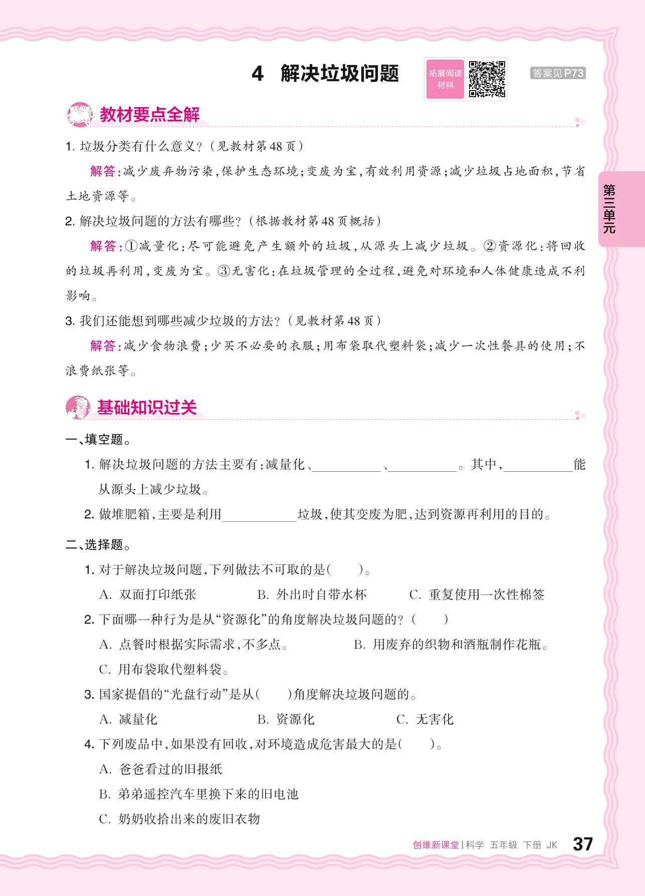2024春下册五年级科学教科版 第三单元 环境与我们——4. 解决垃圾问题