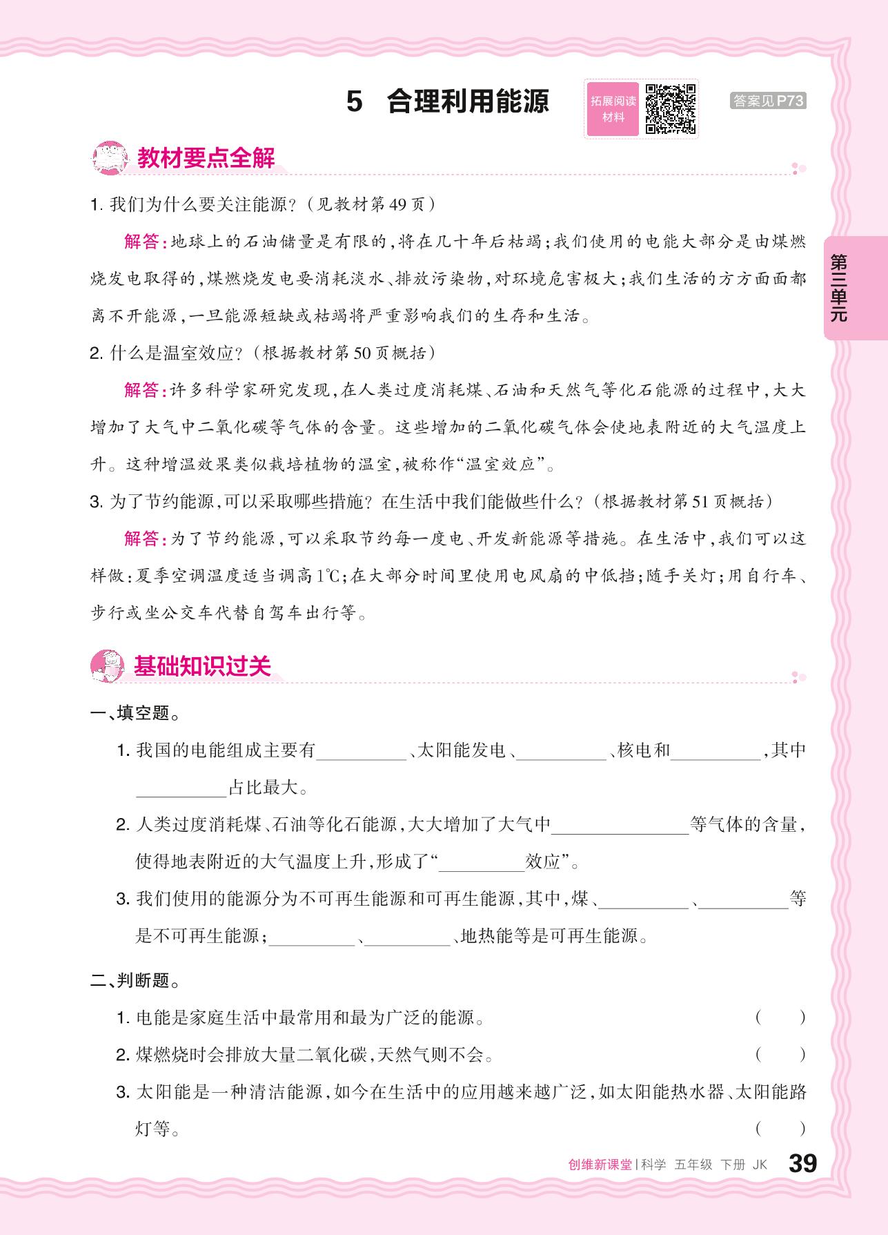 2024春下册五年级科学教科版 第三单元 环境与我们——5. 合理利用能源