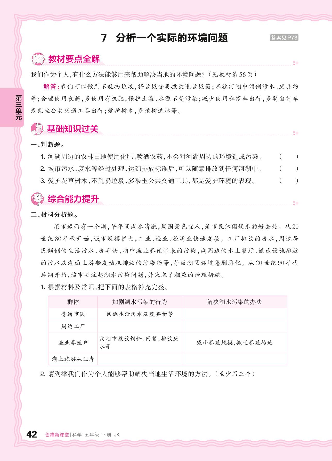 2024春下册五年级科学教科版 第三单元 环境与我们——7. 分析一个实际的环境问题
