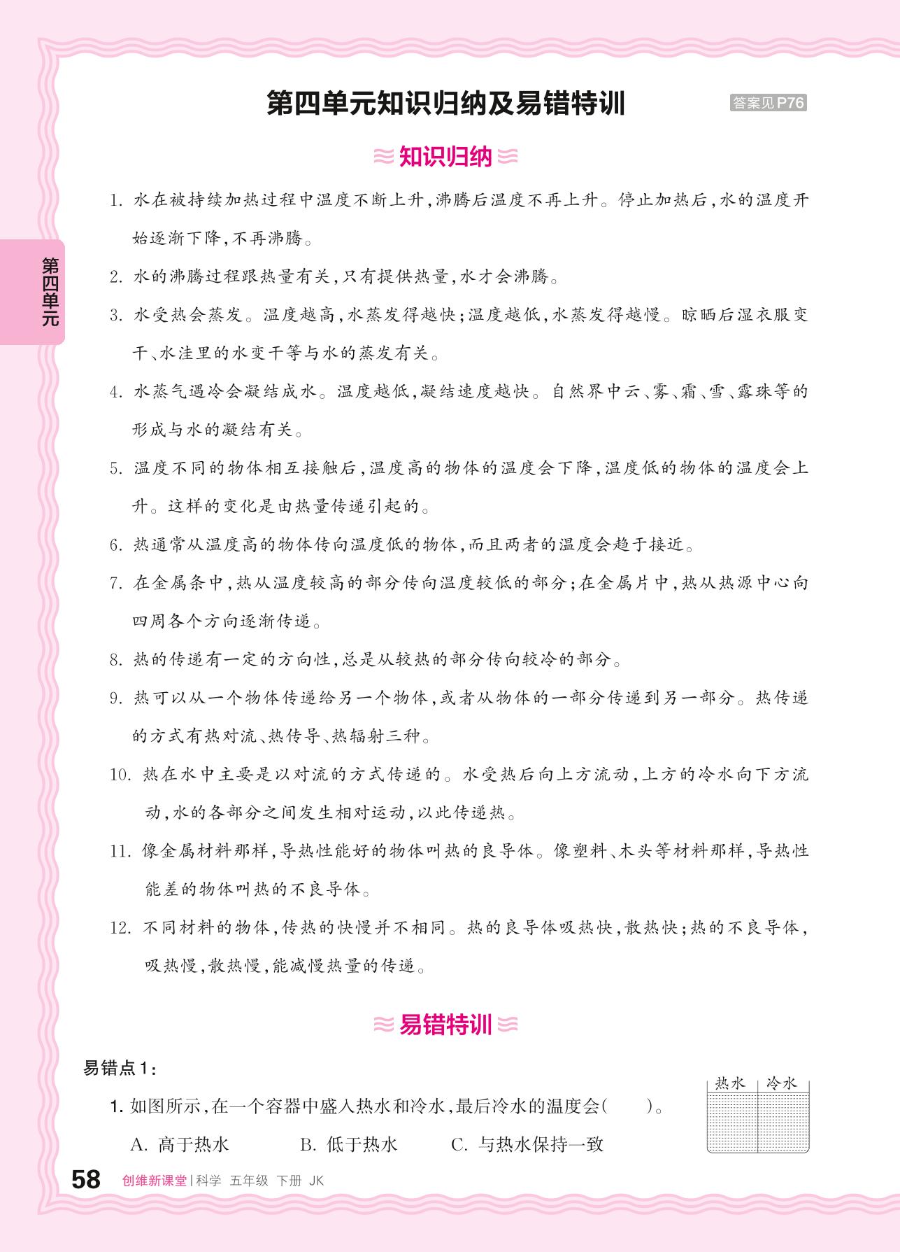 2024春下册五年级科学教科版 第四单元知识归纳及易错特训