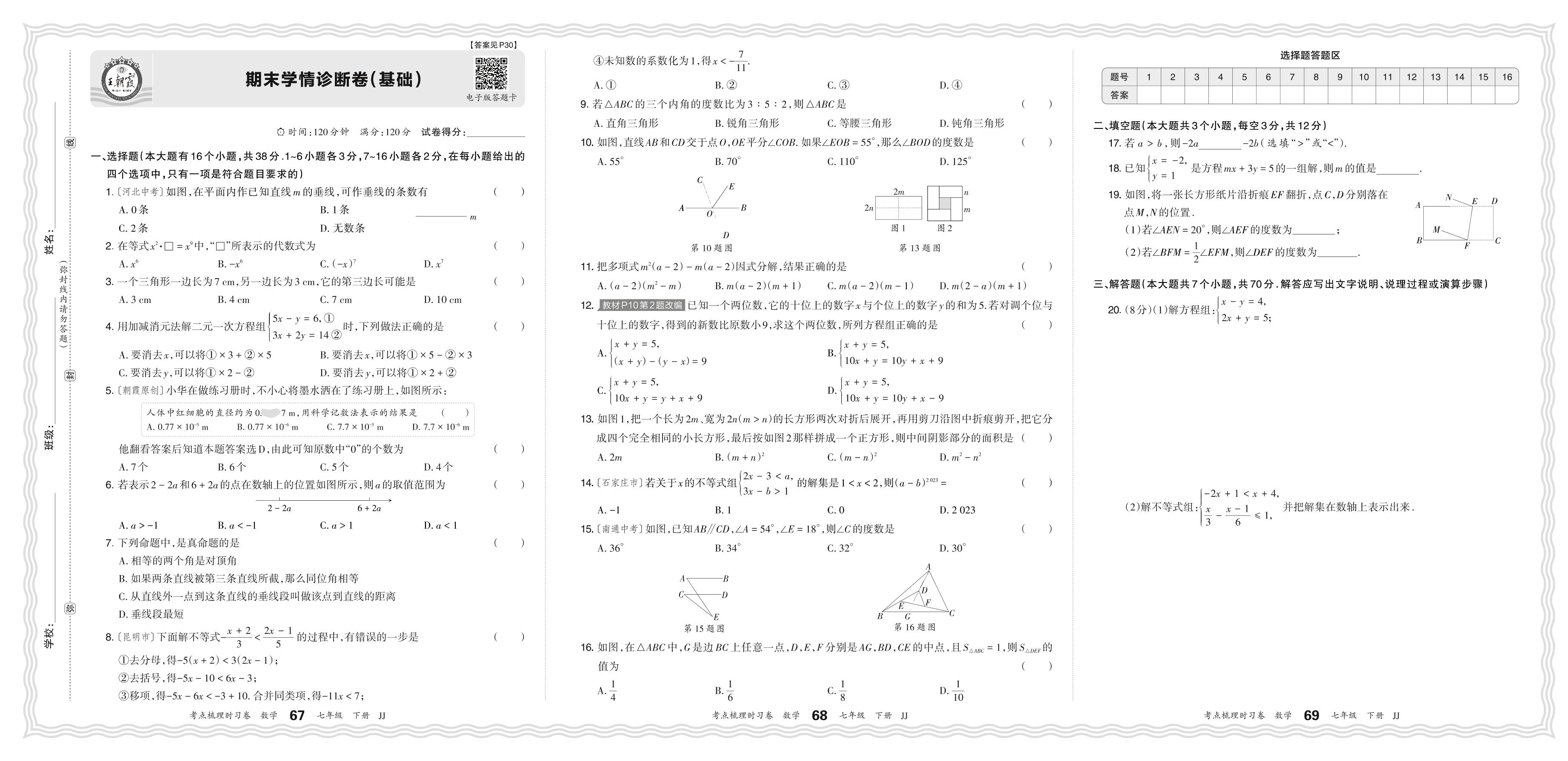 2024春下册七年级数学冀教版 期末学情诊断卷(基础)