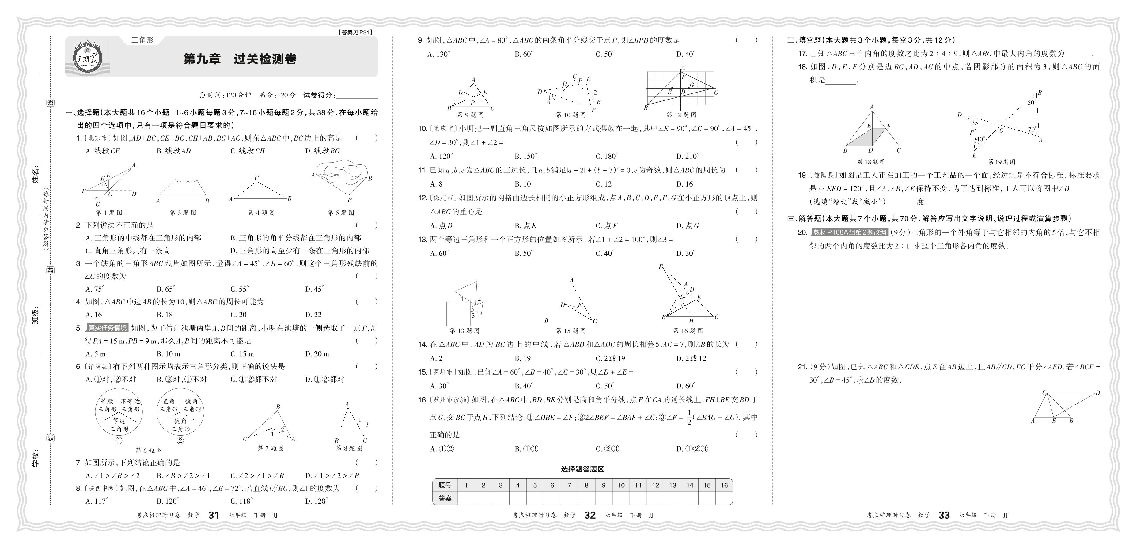 2024春下册七年级数学冀教版 第九章 过关检测卷