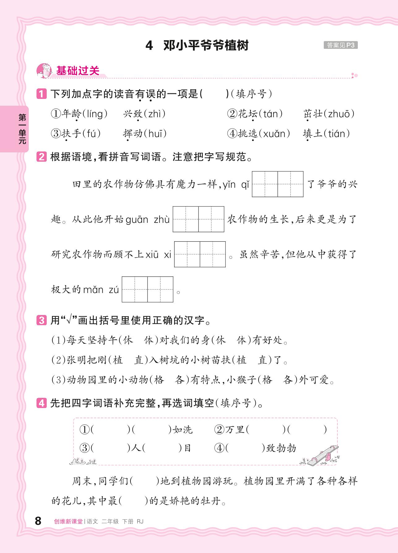 2024春下册二年级语文人教版 第一单元 春天——4. 邓小平爷爷植树