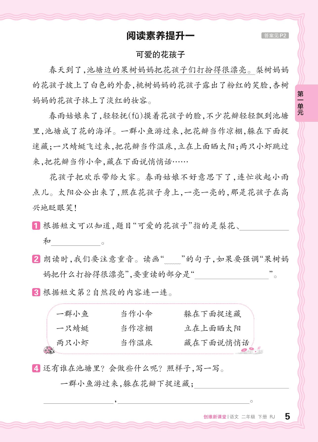 2024春下册二年级语文人教版 第一单元 春天——阅读素养提升一