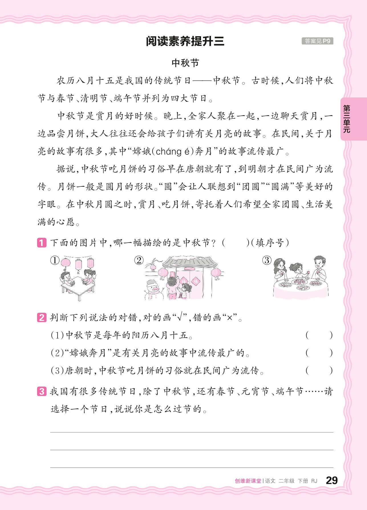 2024春下册二年级语文人教版 第三单元 传统文化——阅读素养提升三