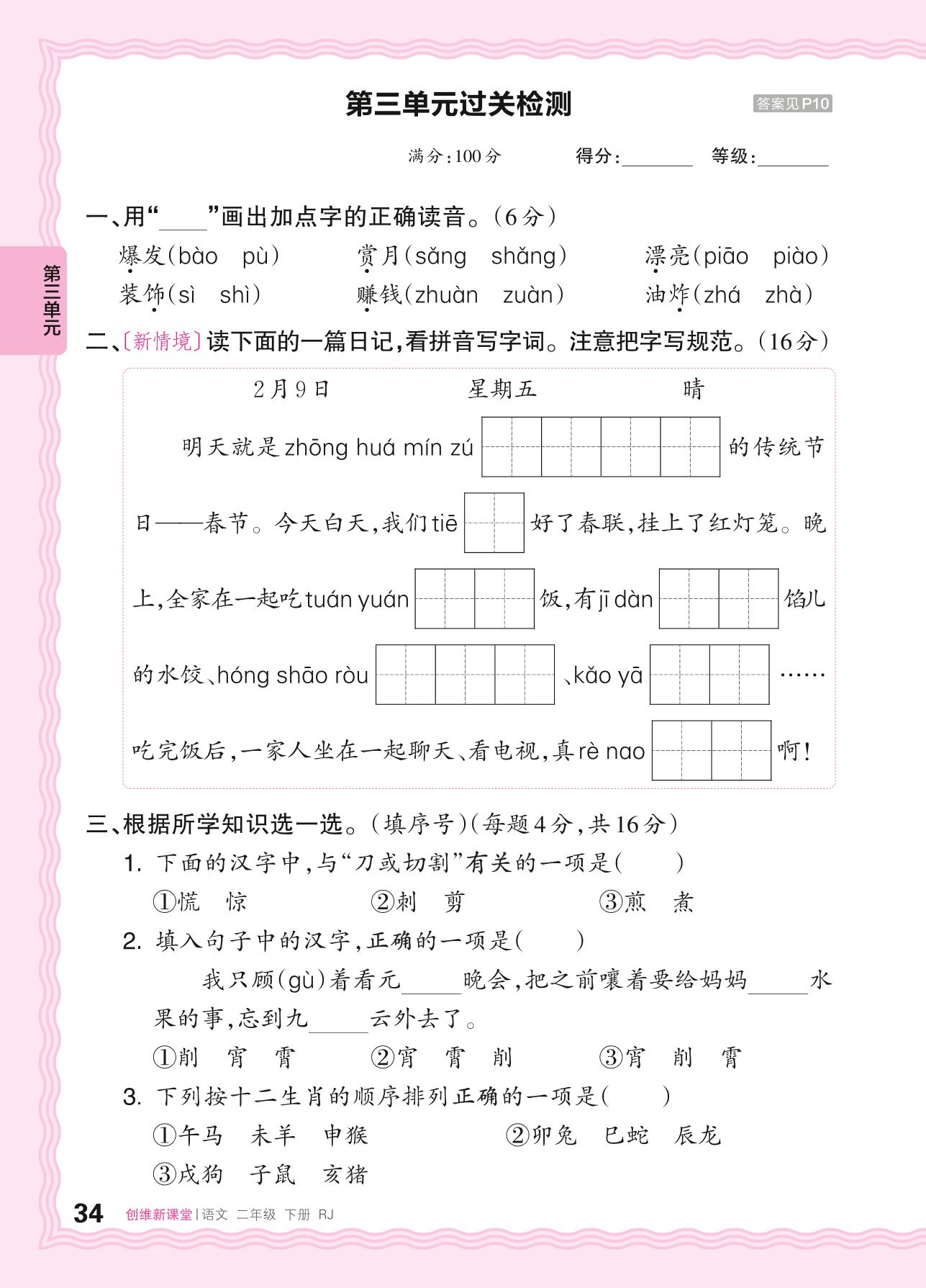 二年级语文人教版下册单元卷