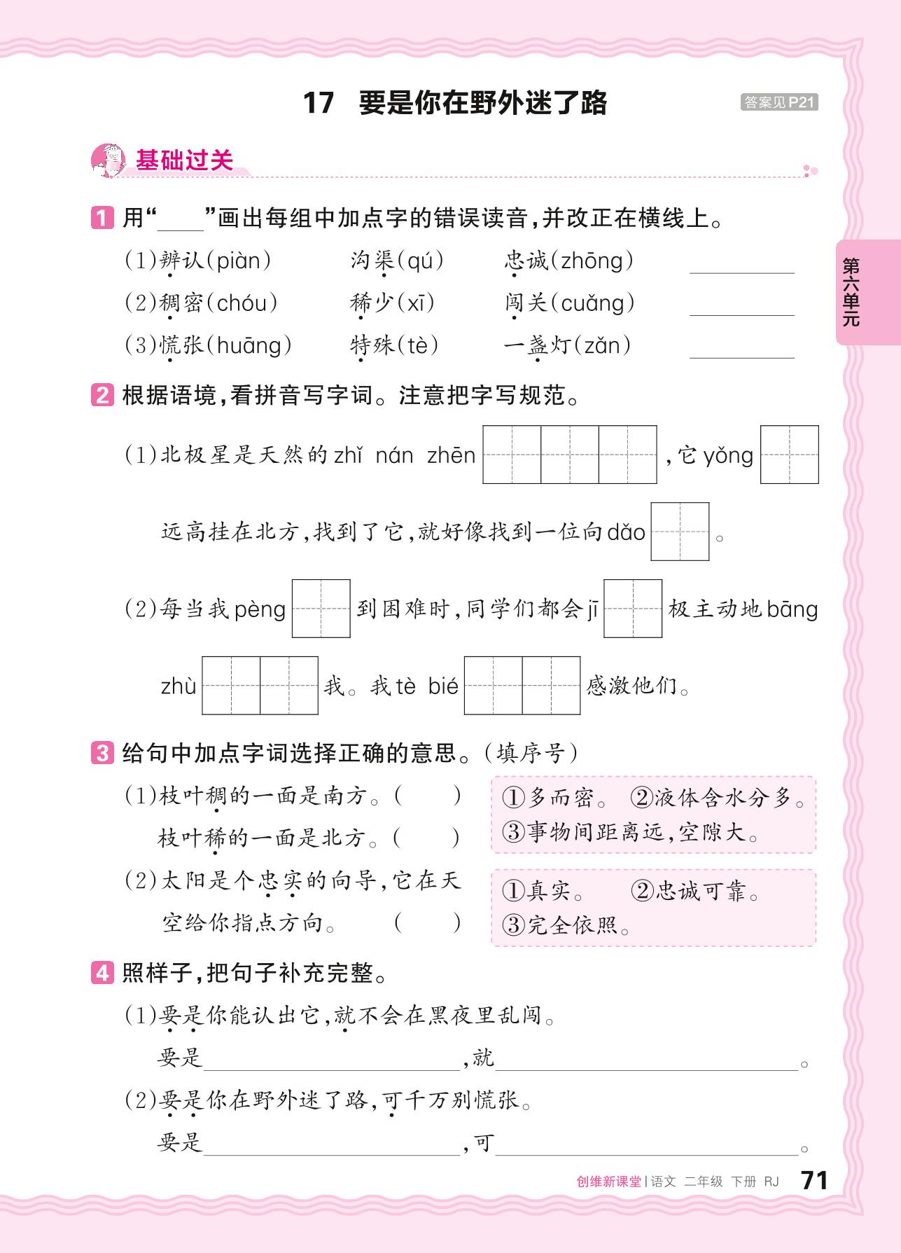 2024春下册二年级语文人教版 第六单元 大自然的秘密——17. 要是你在野外迷了路
