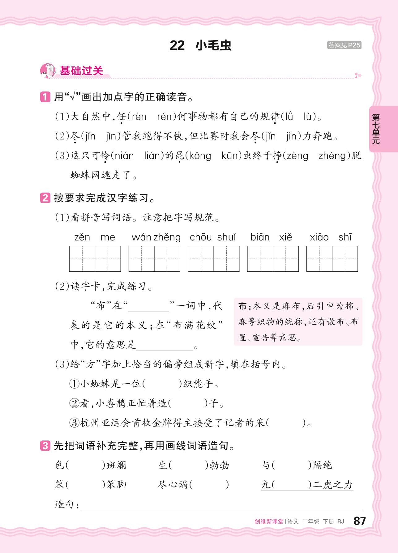 2024春下册二年级语文人教版 第七单元 改变——22. 小毛虫