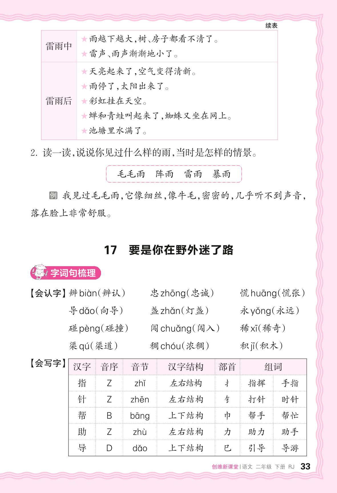 2024春下册二年级语文人教版 助学手册 第六单元——17. 要是你在野外迷了路