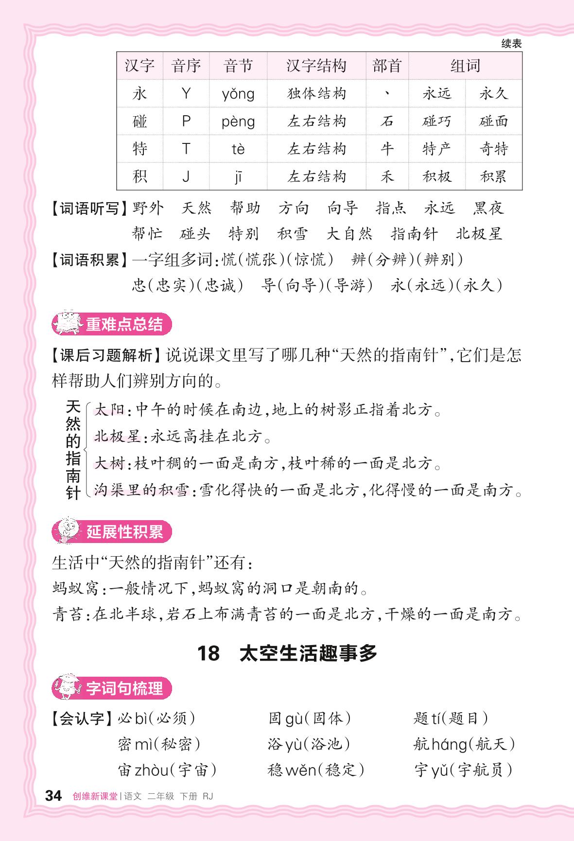 2024春下册二年级语文人教版 助学手册 第六单元——18. 太空生活趣事多