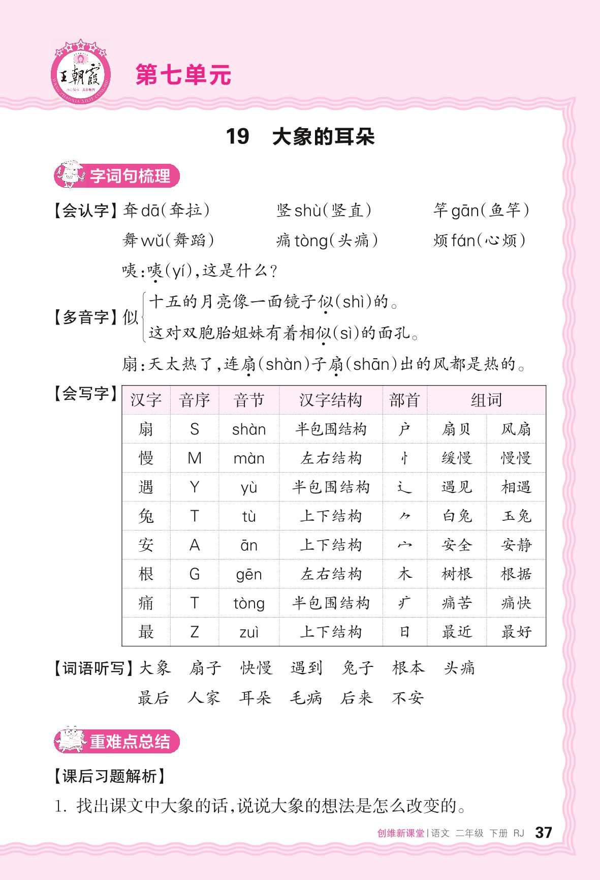 2024春下册二年级语文人教版 助学手册 第七单元——19. 大象的耳朵