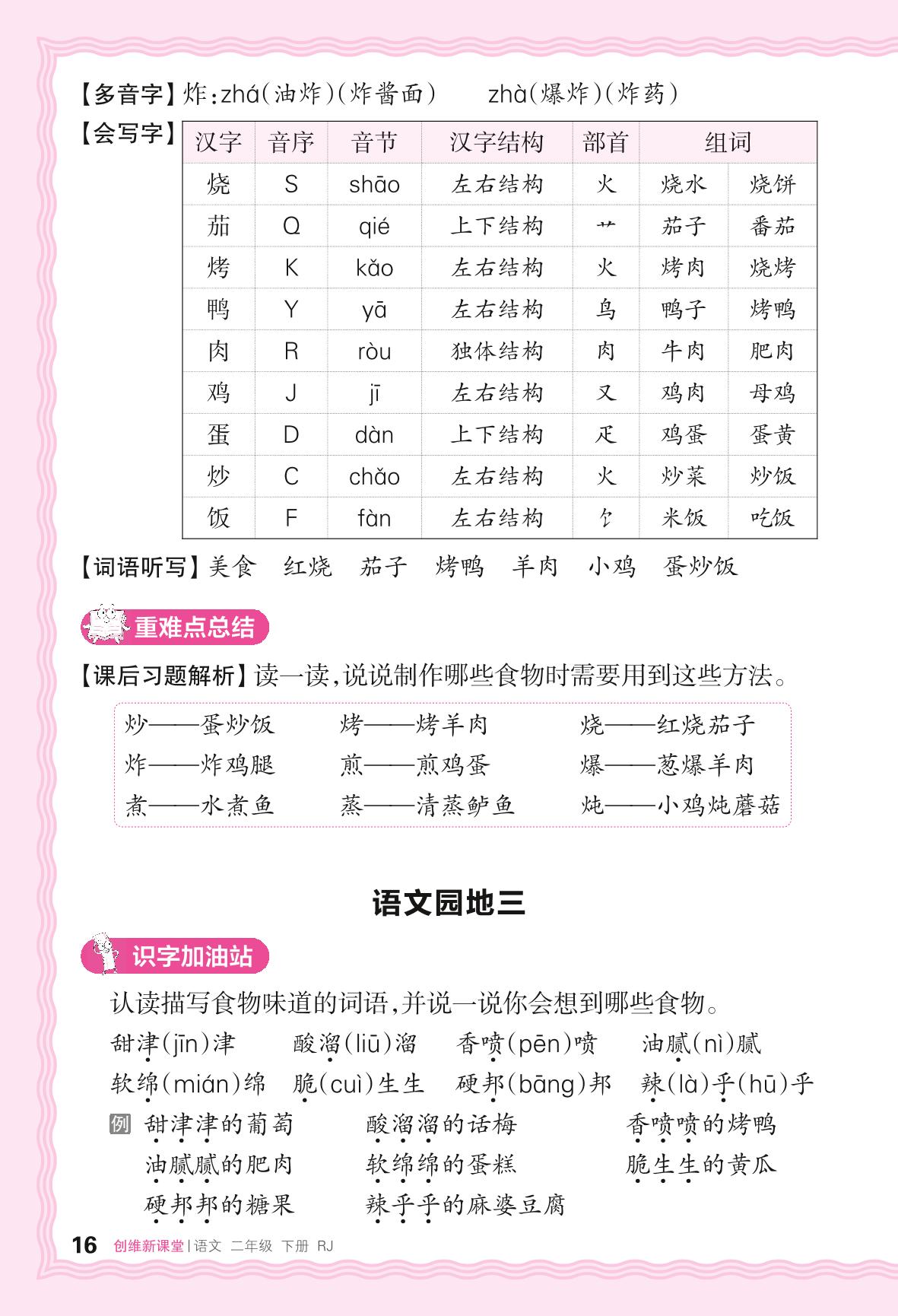 2024春下册二年级语文人教版 助学手册 第三单元——语文园地三