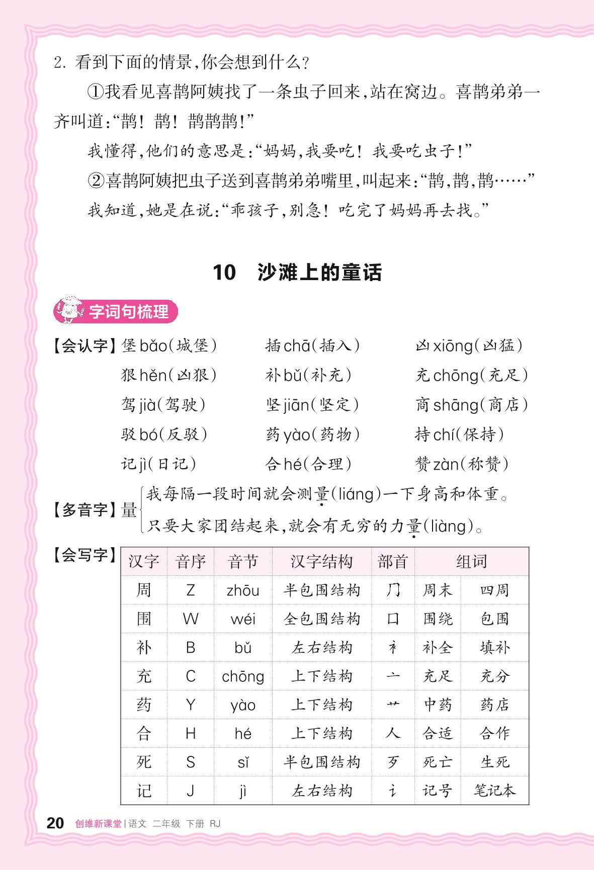 2024春下册二年级语文人教版 助学手册 第四单元——10. 沙滩上的童话