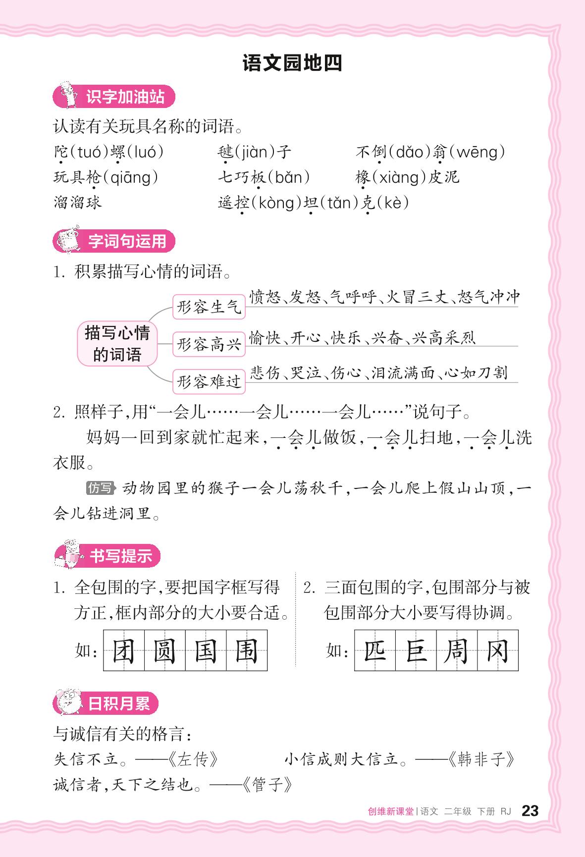 2024春下册二年级语文人教版 助学手册 第四单元——语文园地四