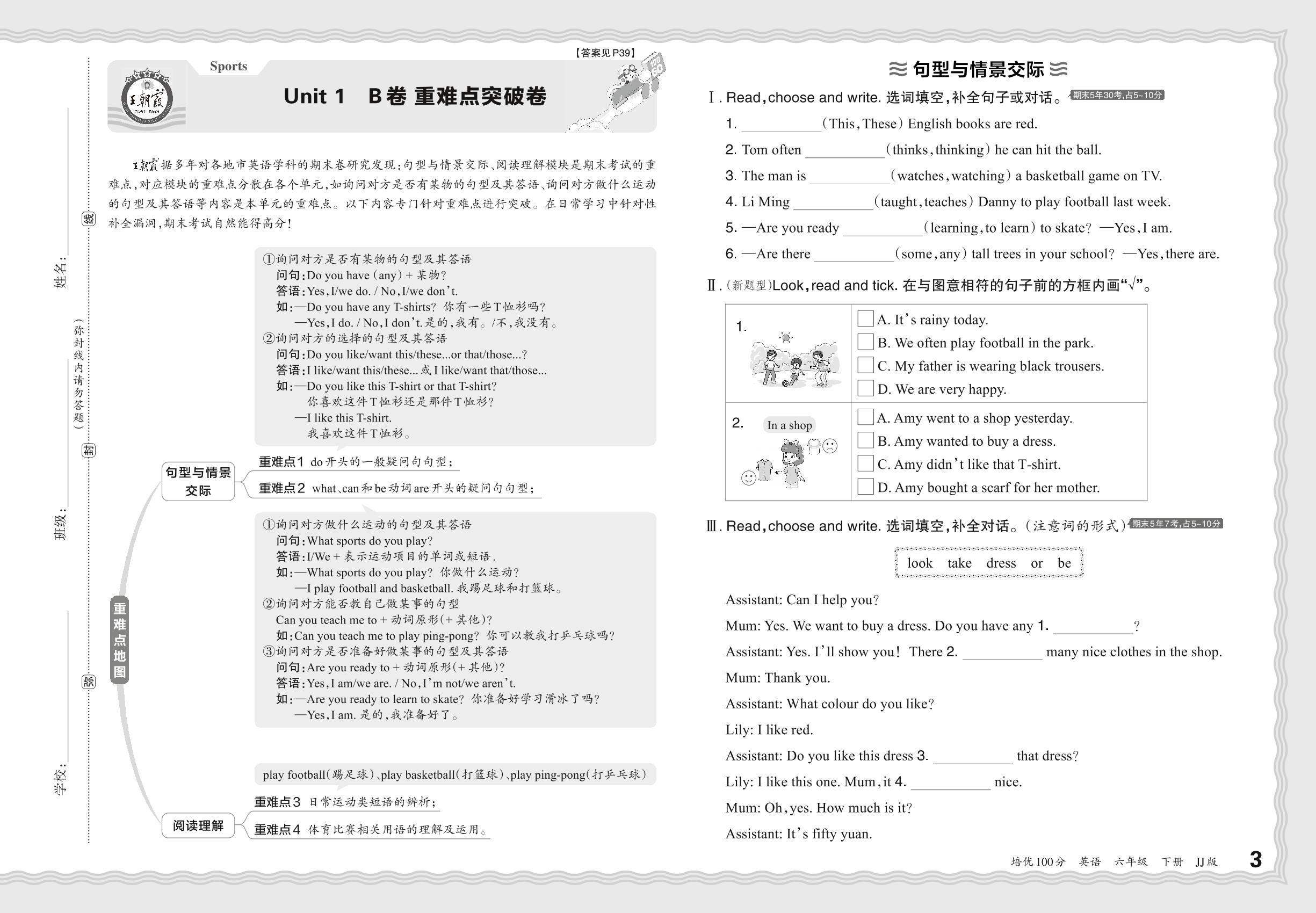 2024春下册六年级英语冀教版 Unit 1 B卷 重难点突破卷