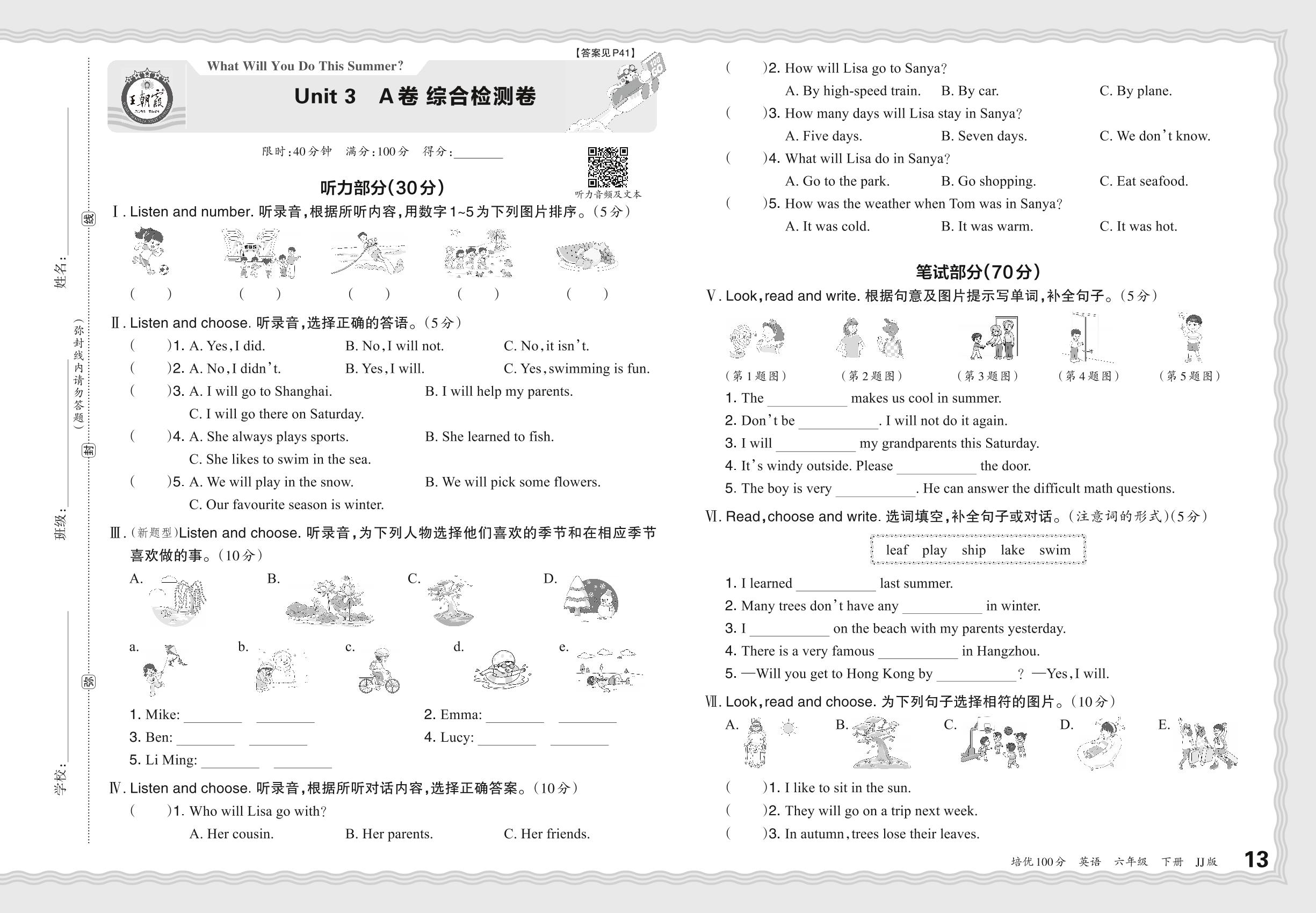 六年级英语冀教版下册单元卷