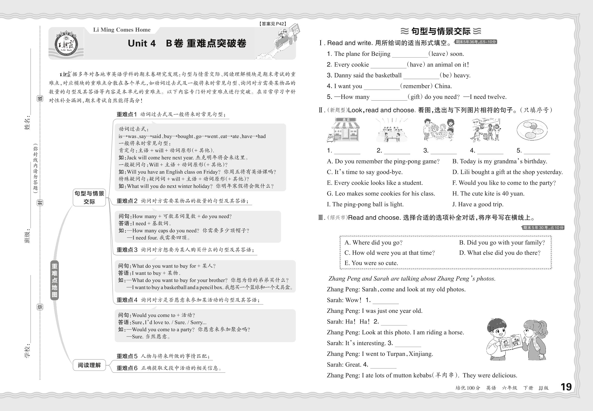 2024春下册六年级英语冀教版 Unit 4 B卷 重难点突破卷