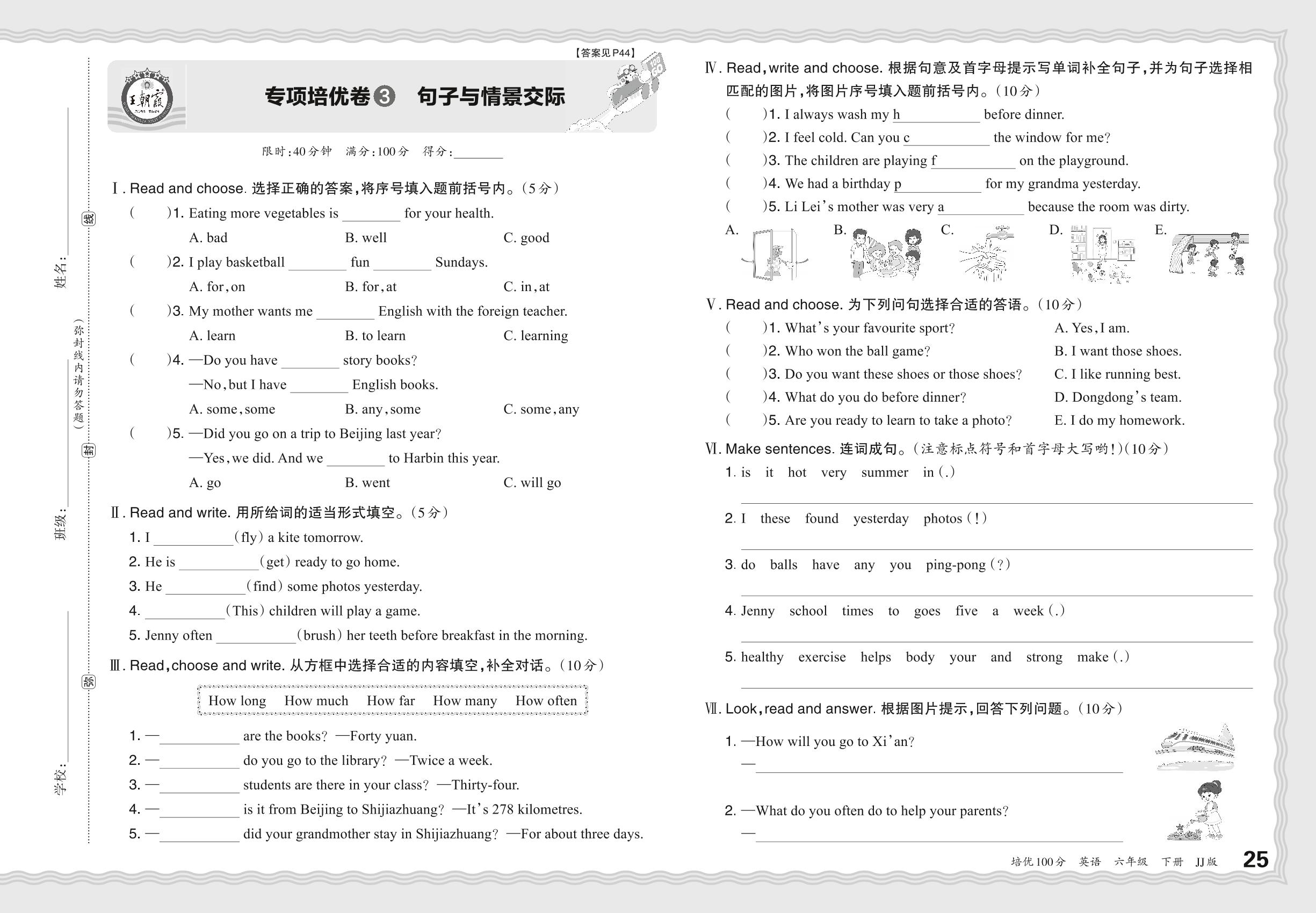 2024春下册六年级英语冀教版 期末专项卷PY版·句子与情景交际【3】