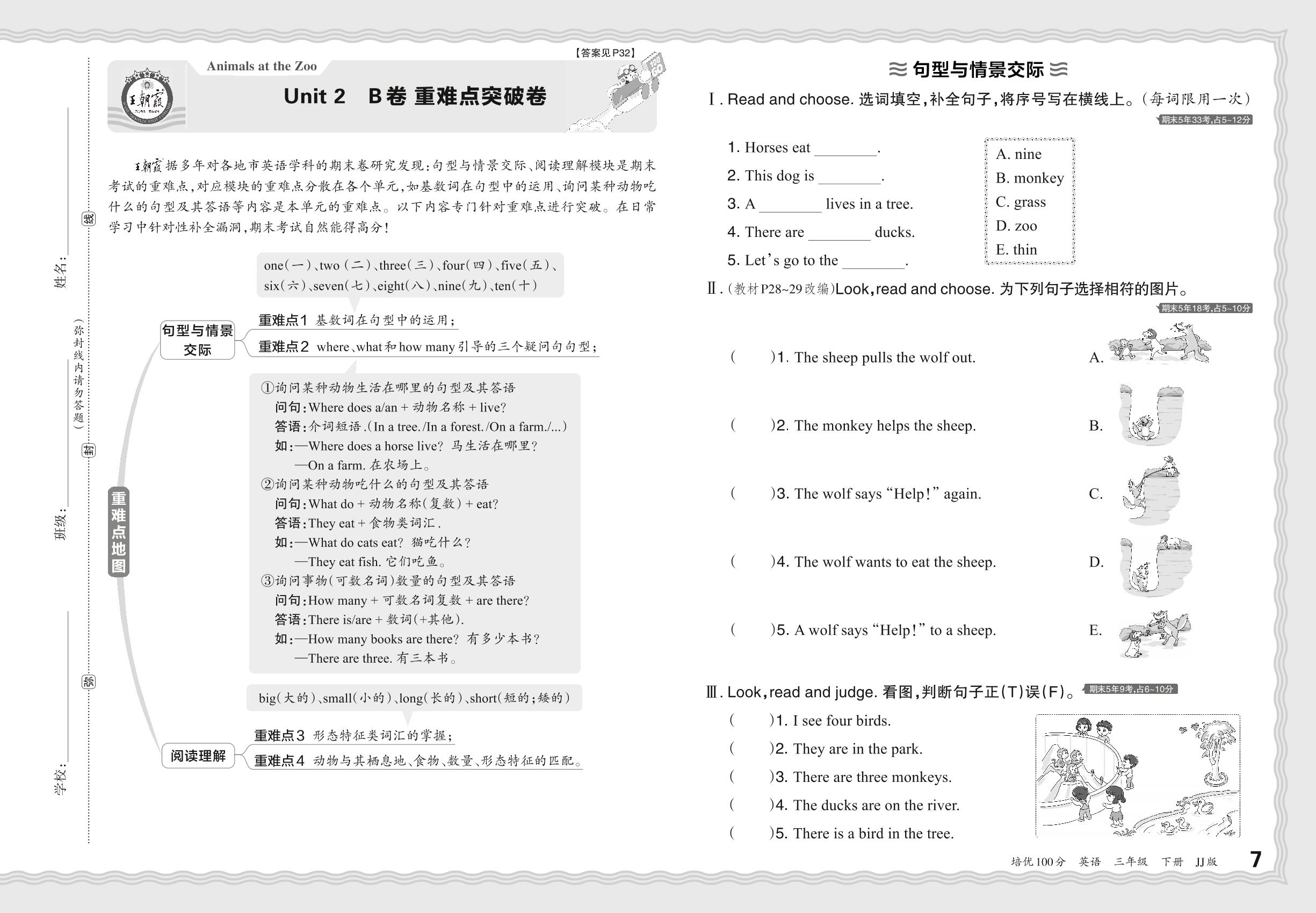 2024春下册三年级英语冀教版 Unit 2 B卷 重难点突破卷