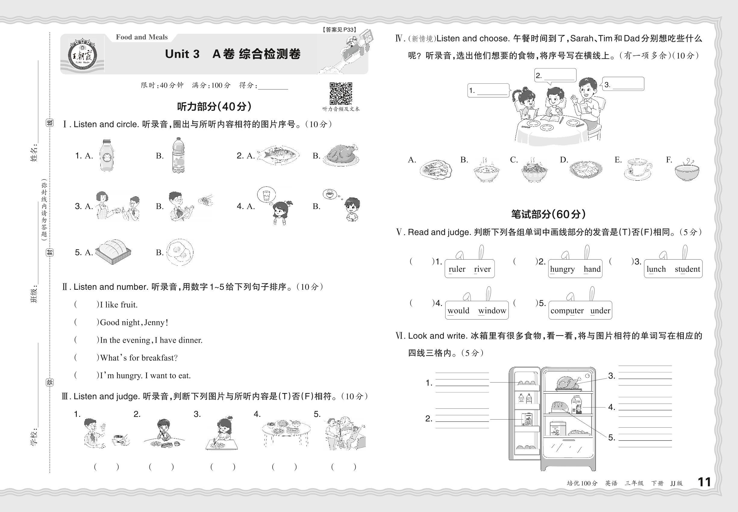 2024春下册三年级英语冀教版 Unit 3 A卷 综合检测卷