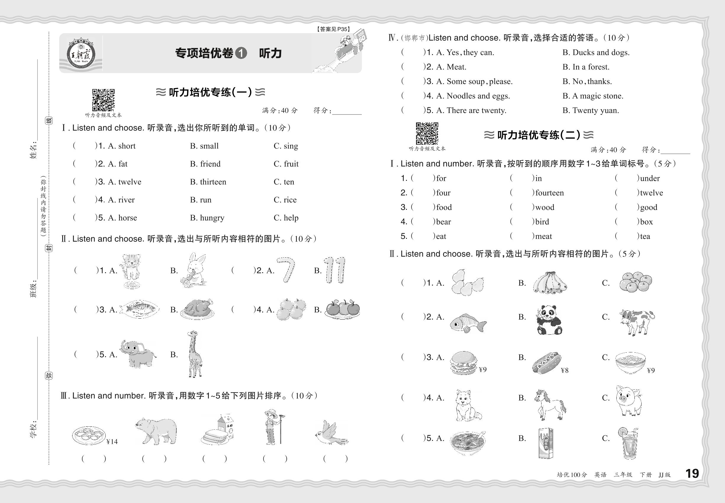 2024春下册三年级英语冀教版 期末专项卷PY版·听力【1】