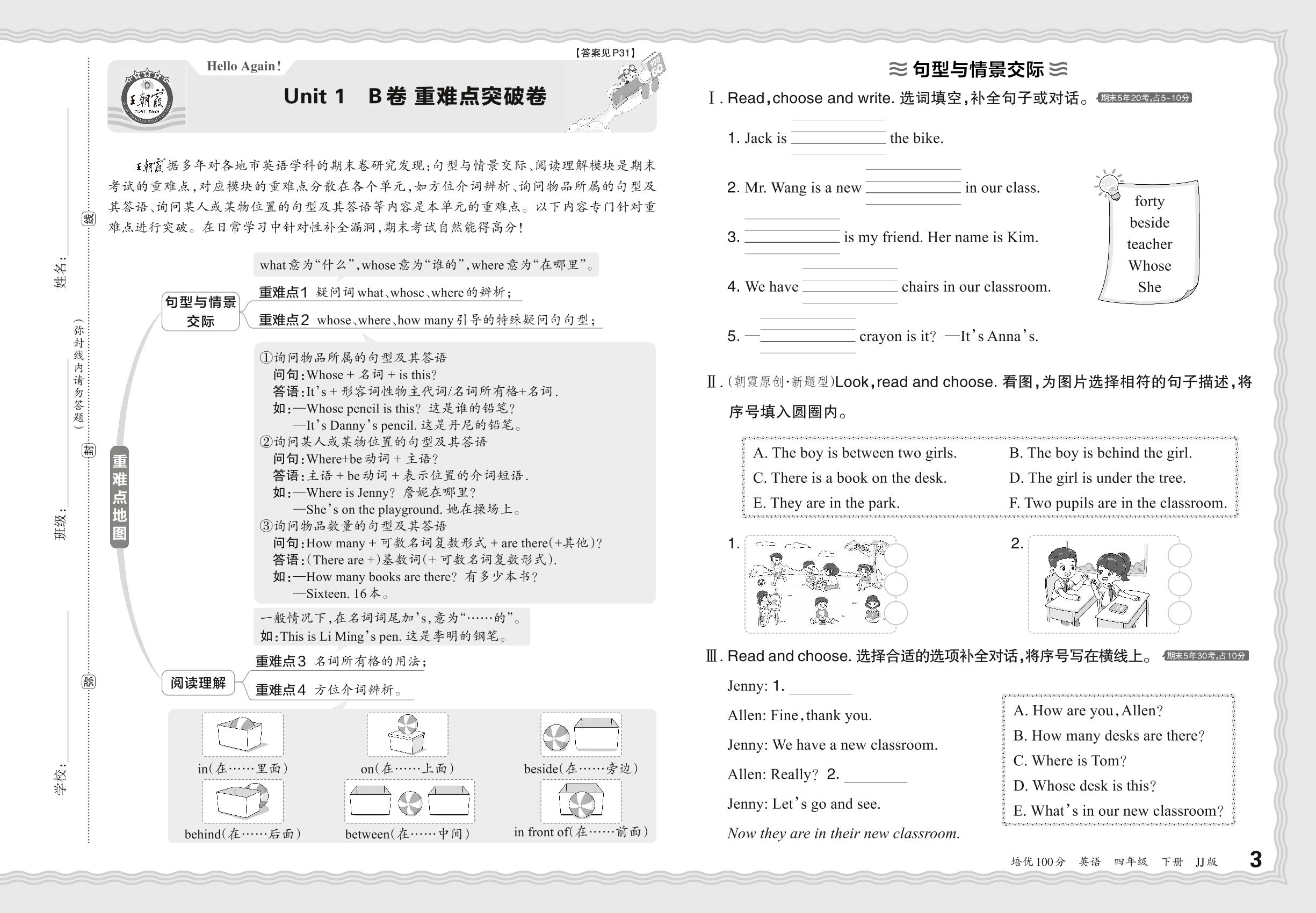 2024春下册四年级英语冀教版 Unit 1 B卷 重难点突破卷