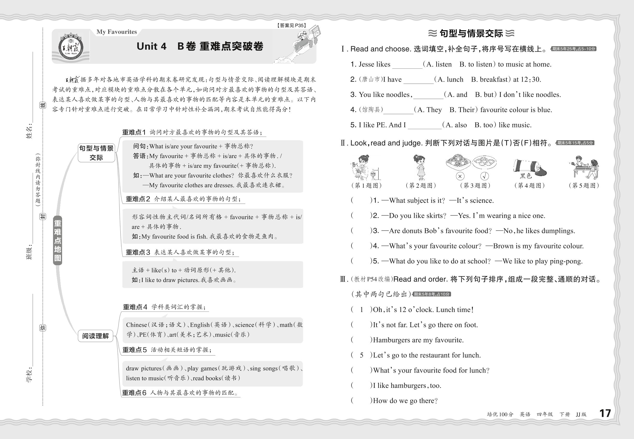 2024春下册四年级英语冀教版 Unit 4 B卷 重难点突破卷