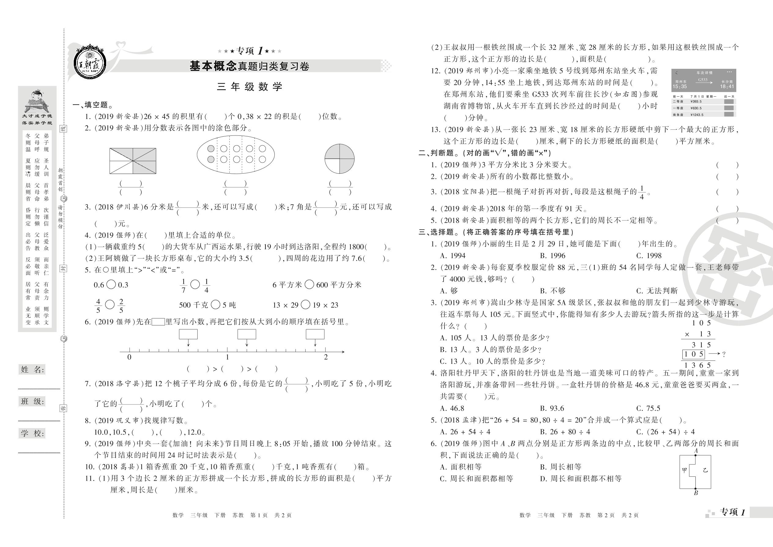 王朝霞期末专项卷——基本概念、计算真题归类复习卷三年级下册数学(苏教版)_R21080493711【0】