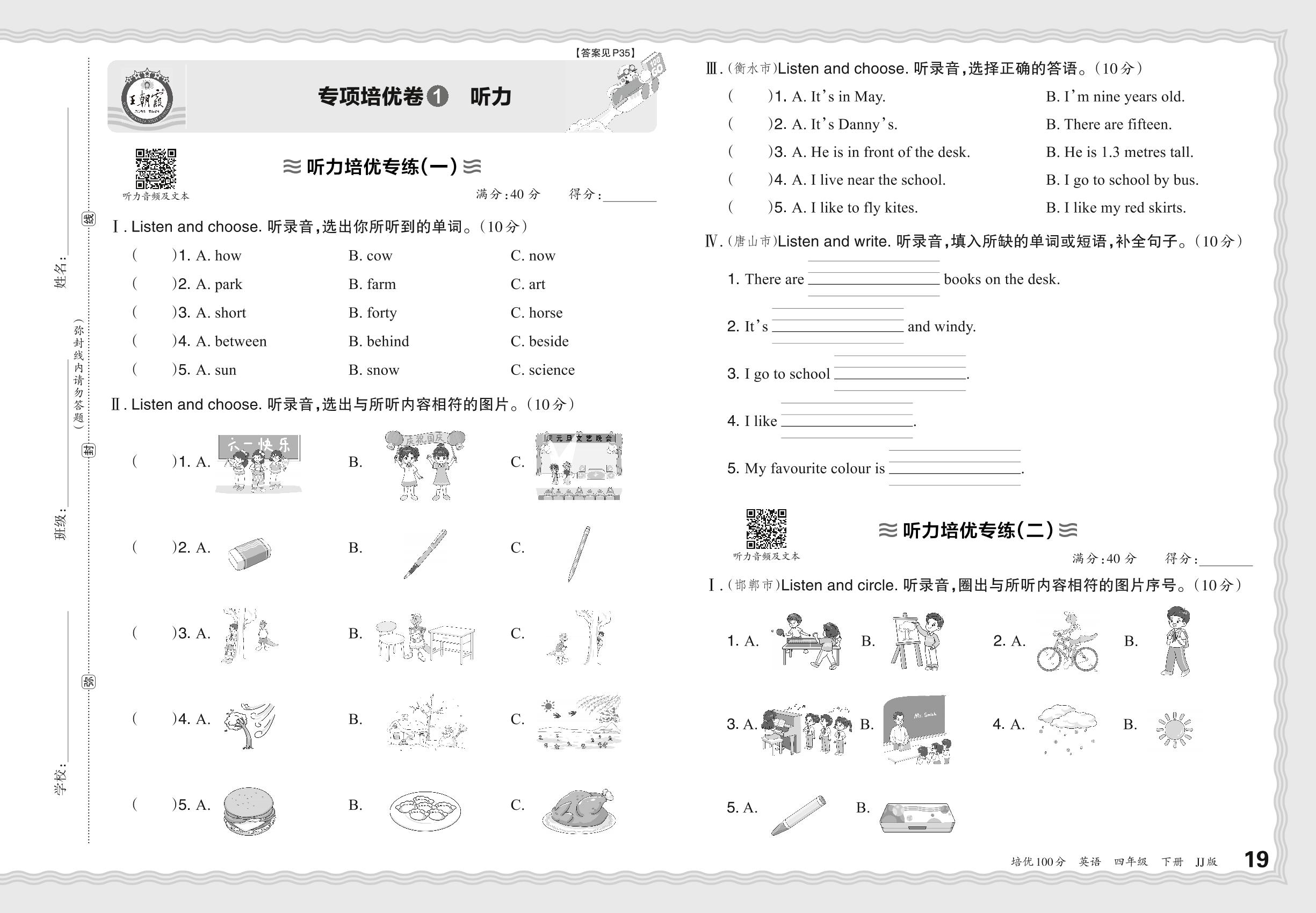 2024春下册四年级英语冀教版 期末专项卷PY版·听力【1】