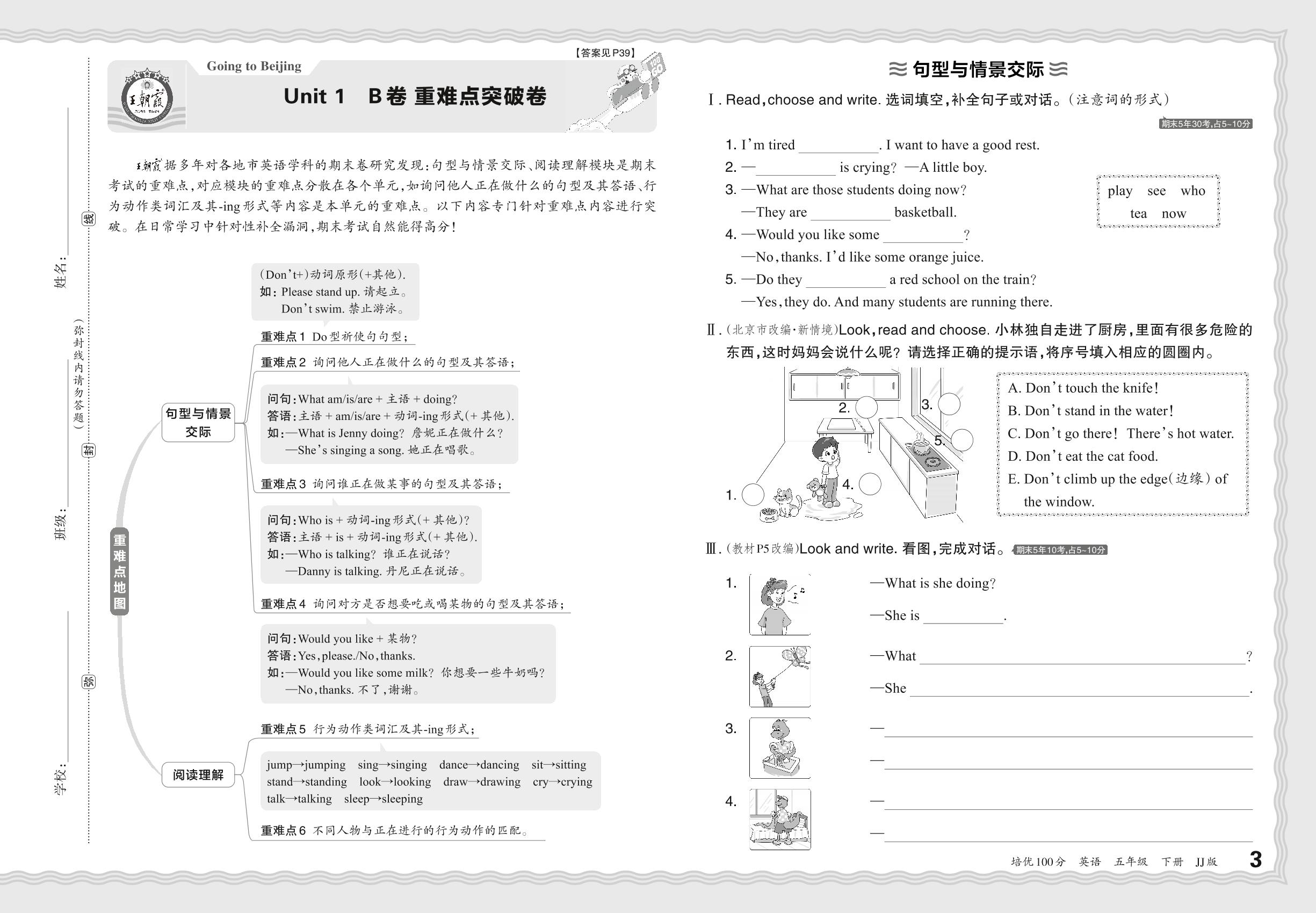 2024春下册五年级英语冀教版 Unit 1 B卷 重难点突破卷