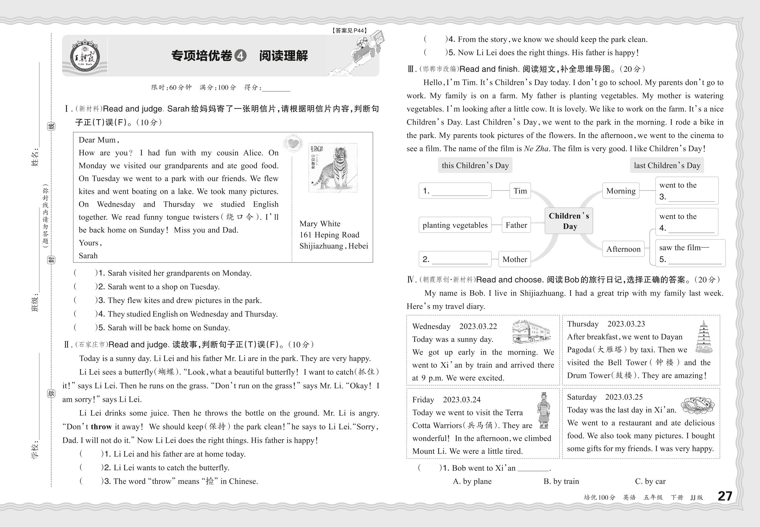 五年级英语冀教版下册专项卷
