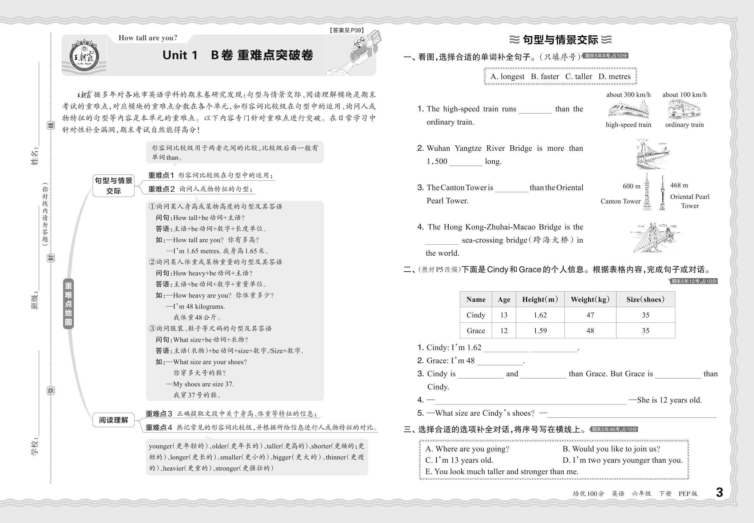 2024春下册六年级英语人教PEP版 Unit 1 B卷 重难点突破卷