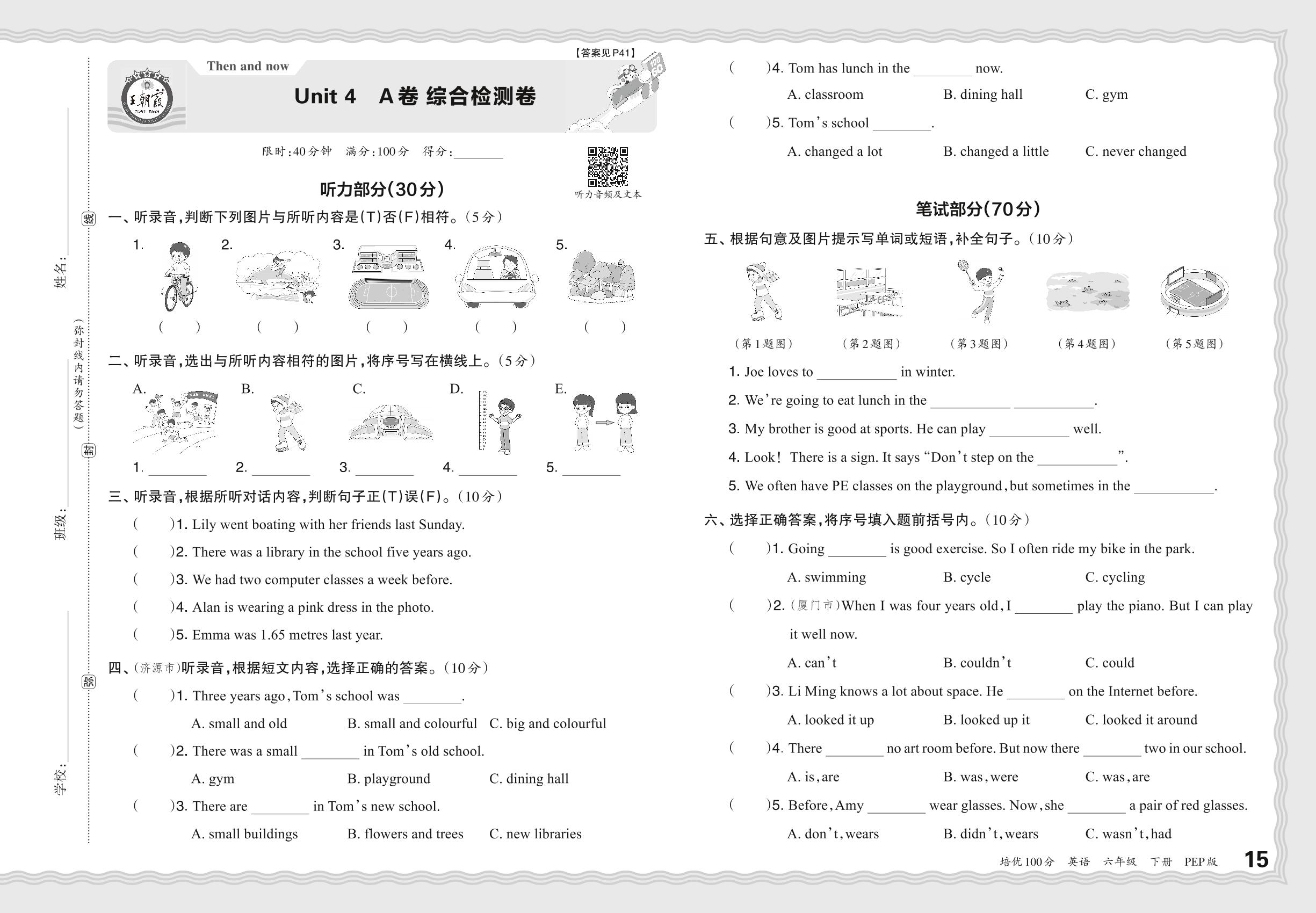 2024春下册六年级英语人教PEP版 Unit 4 A卷 综合检测卷