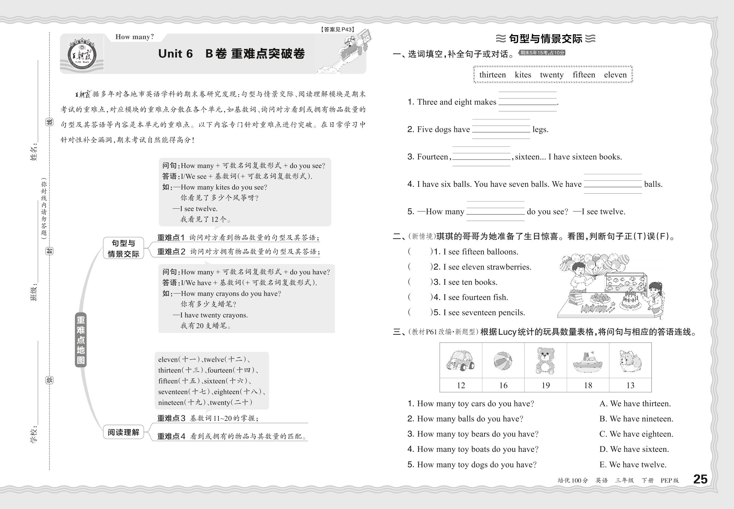 2024春下册三年级英语人教PEP版 Unit 6 B卷 重难点突破卷
