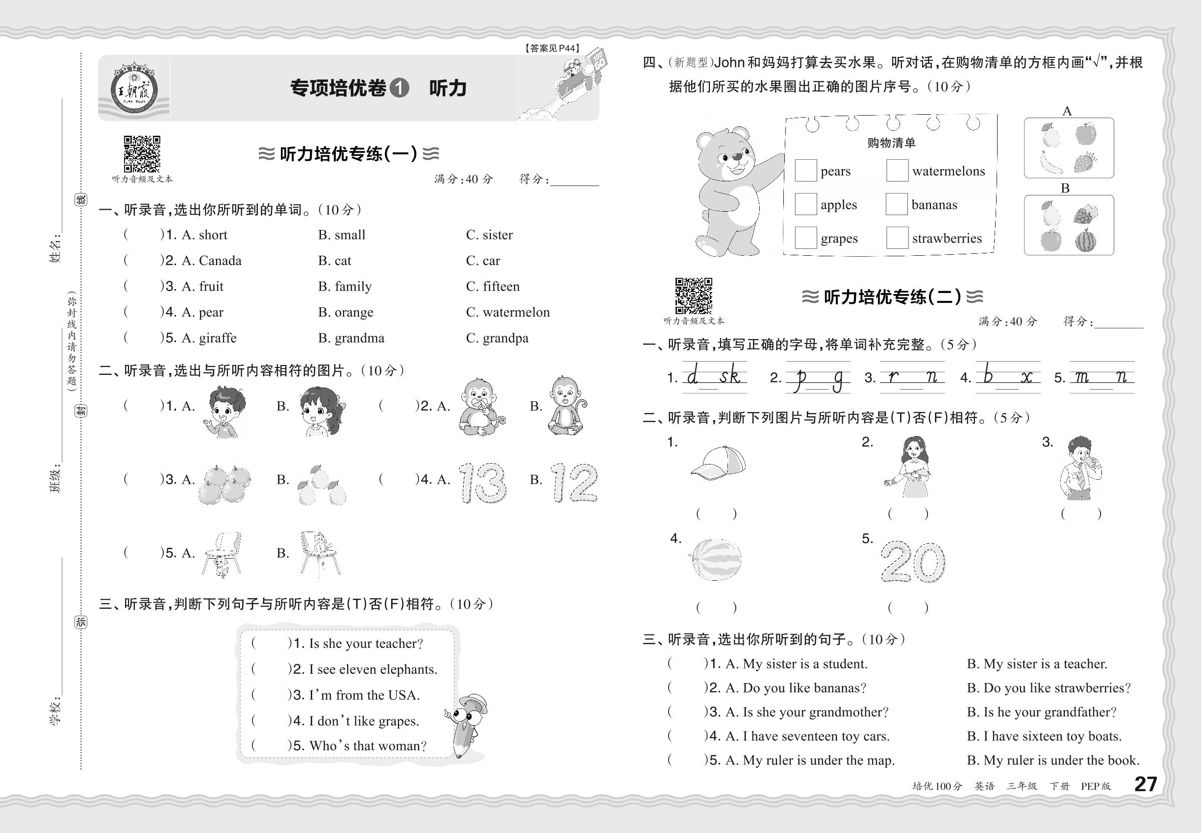 2024春下册三年级英语人教PEP版 期末专项卷PY版·听力【1】
