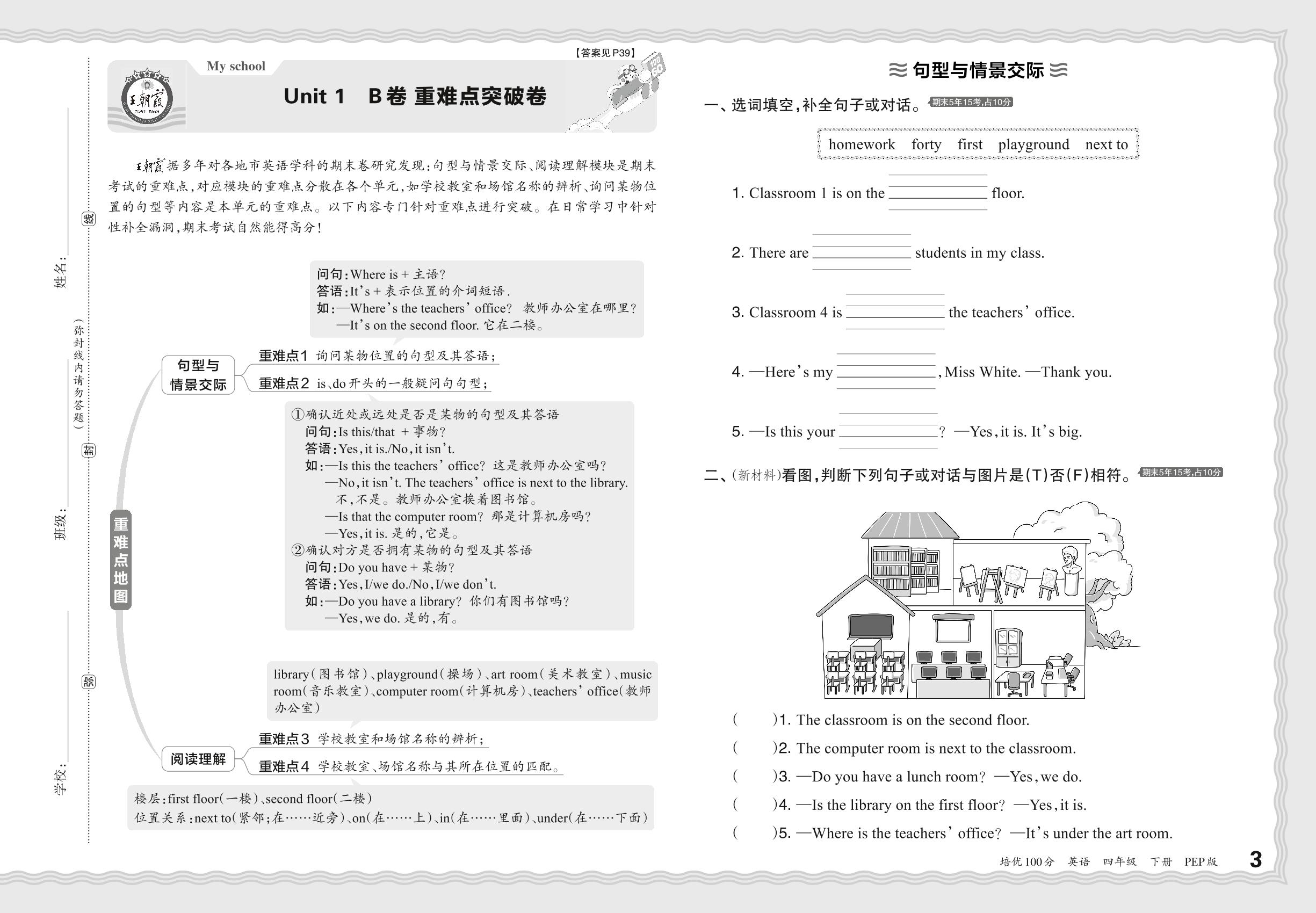 2024春下册四年级英语人教PEP版 Unit 1 B卷 重难点突破卷