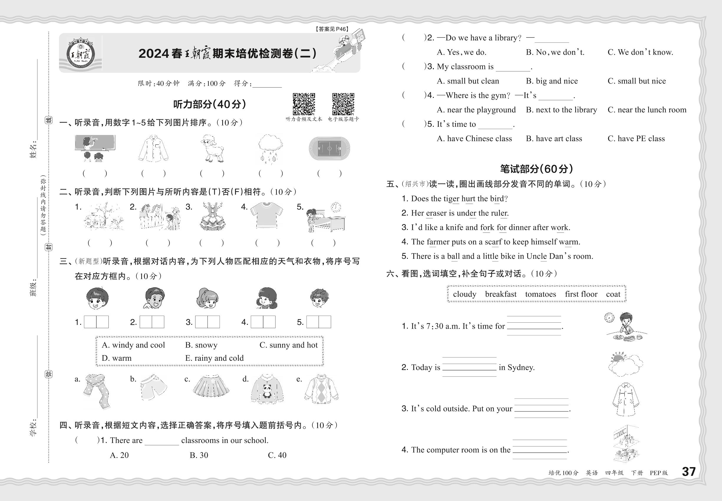 2024春下册四年级英语人教PEP版 王朝霞期末培优检测卷(二)
