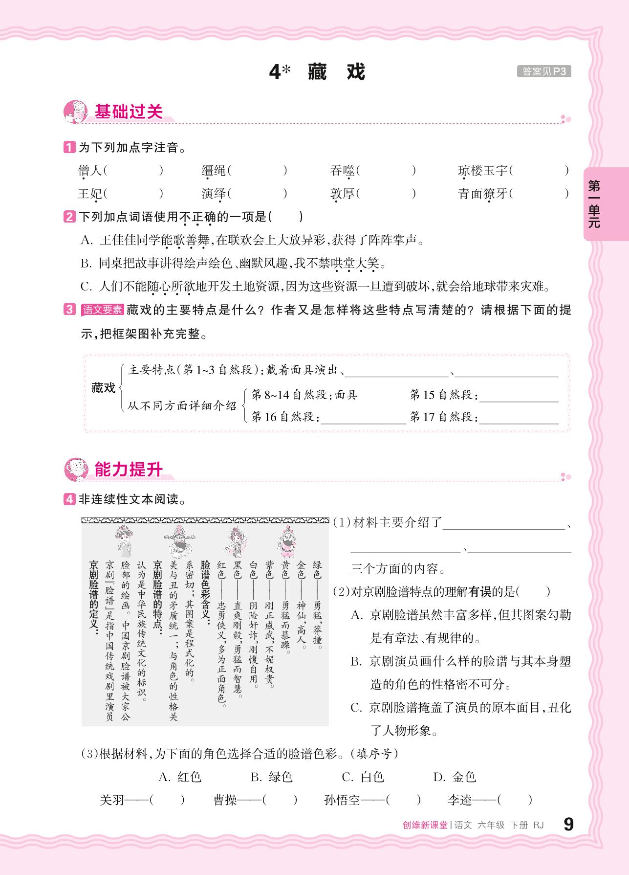 2024春下册六年级语文人教版 第一单元 民风民俗——4. 藏戏