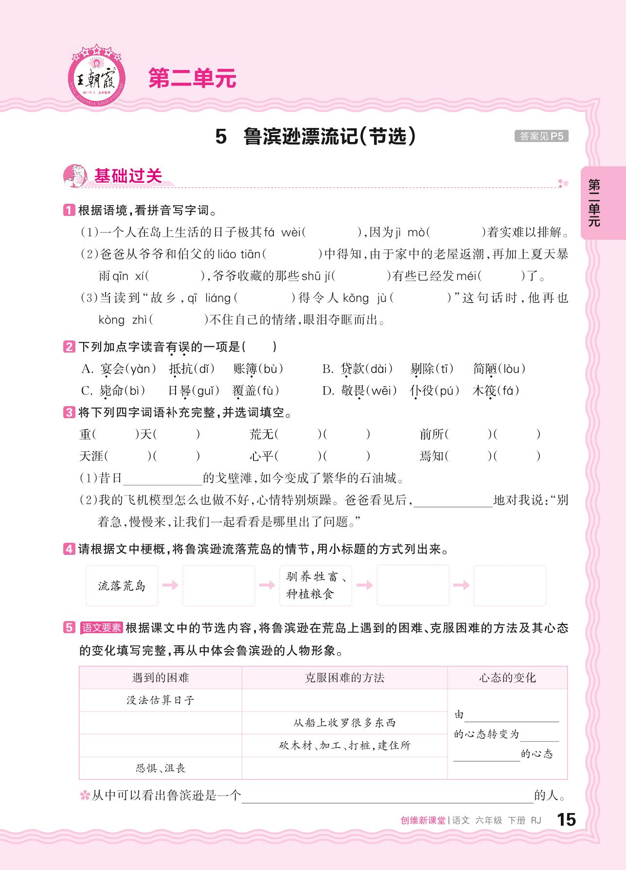 2024春下册六年级语文人教版 第二单元 外国文学名著——5. 鲁滨逊漂流记(节选)