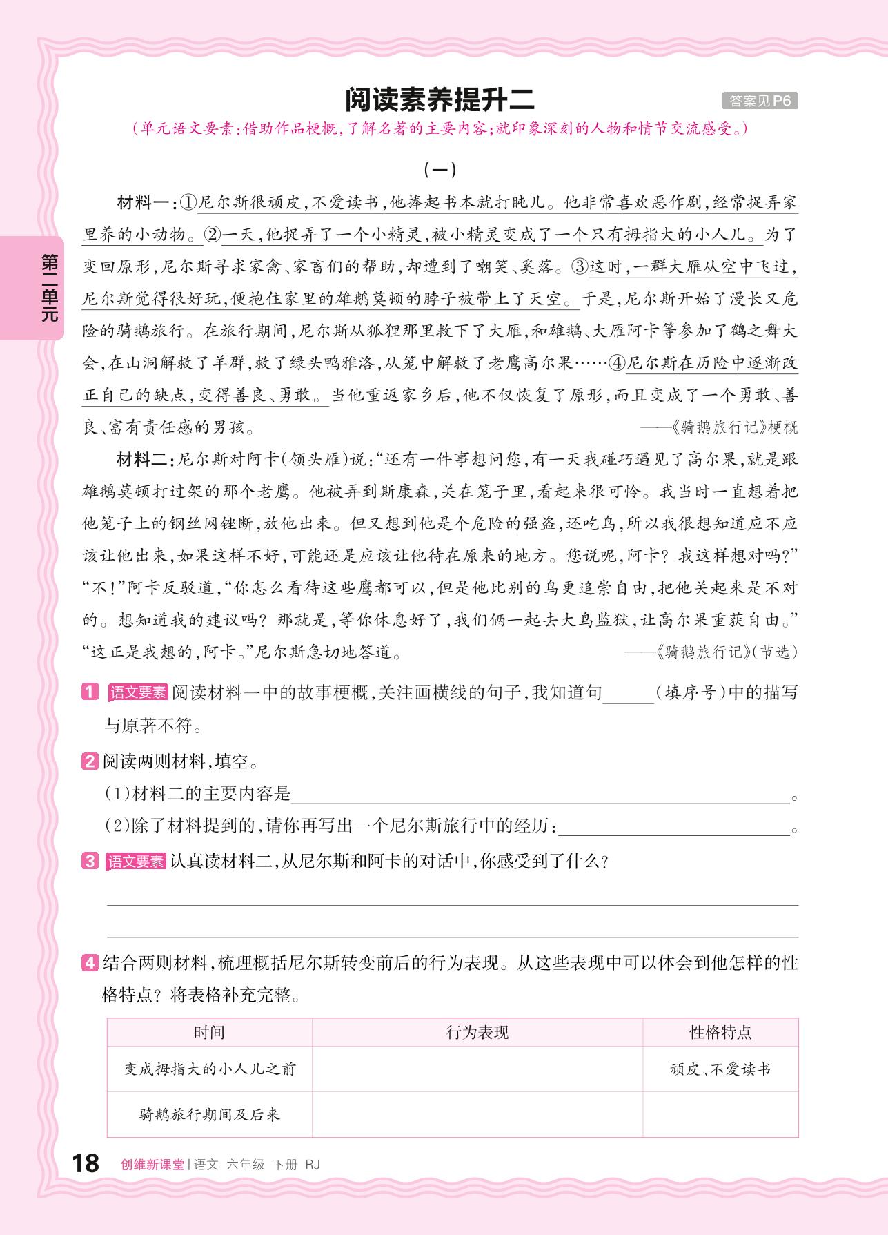 2024春下册六年级语文人教版 第二单元 外国文学名著——阅读素养提升二