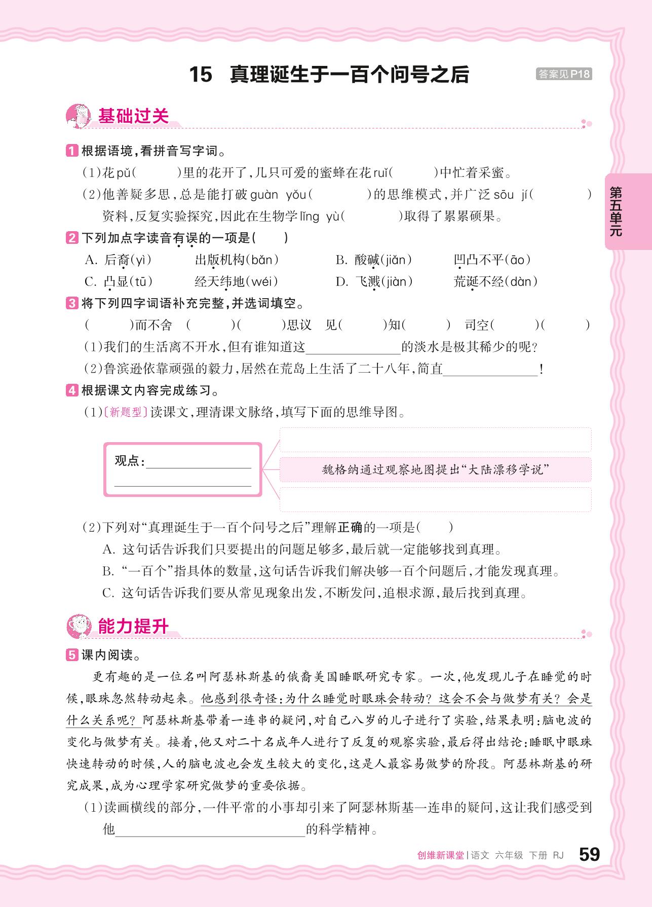 2024春下册六年级语文人教版 第五单元 科学精神——15. 真理诞生于一百个问号之后