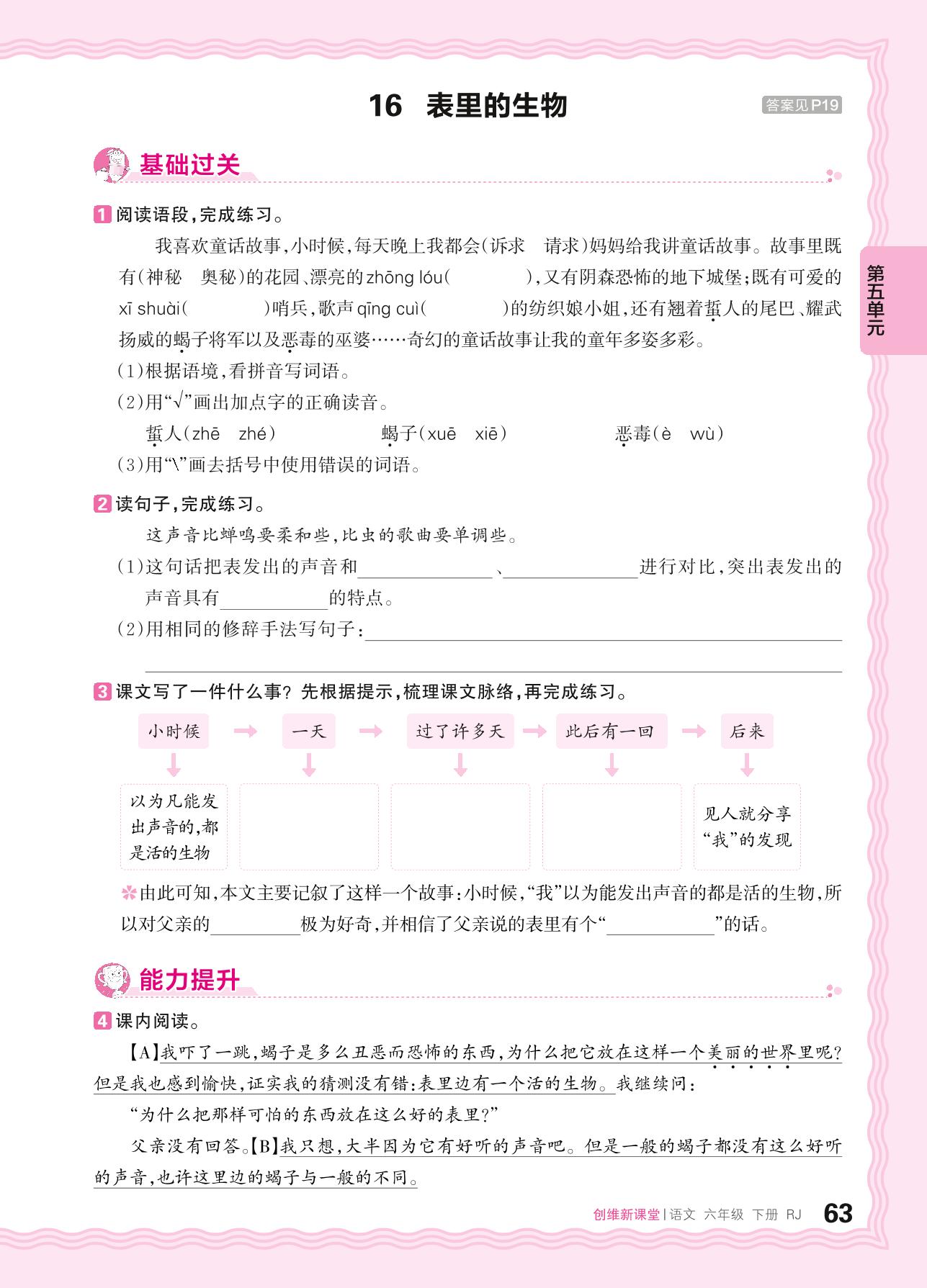 2024春下册六年级语文人教版 第五单元 科学精神——16. 表里的生物