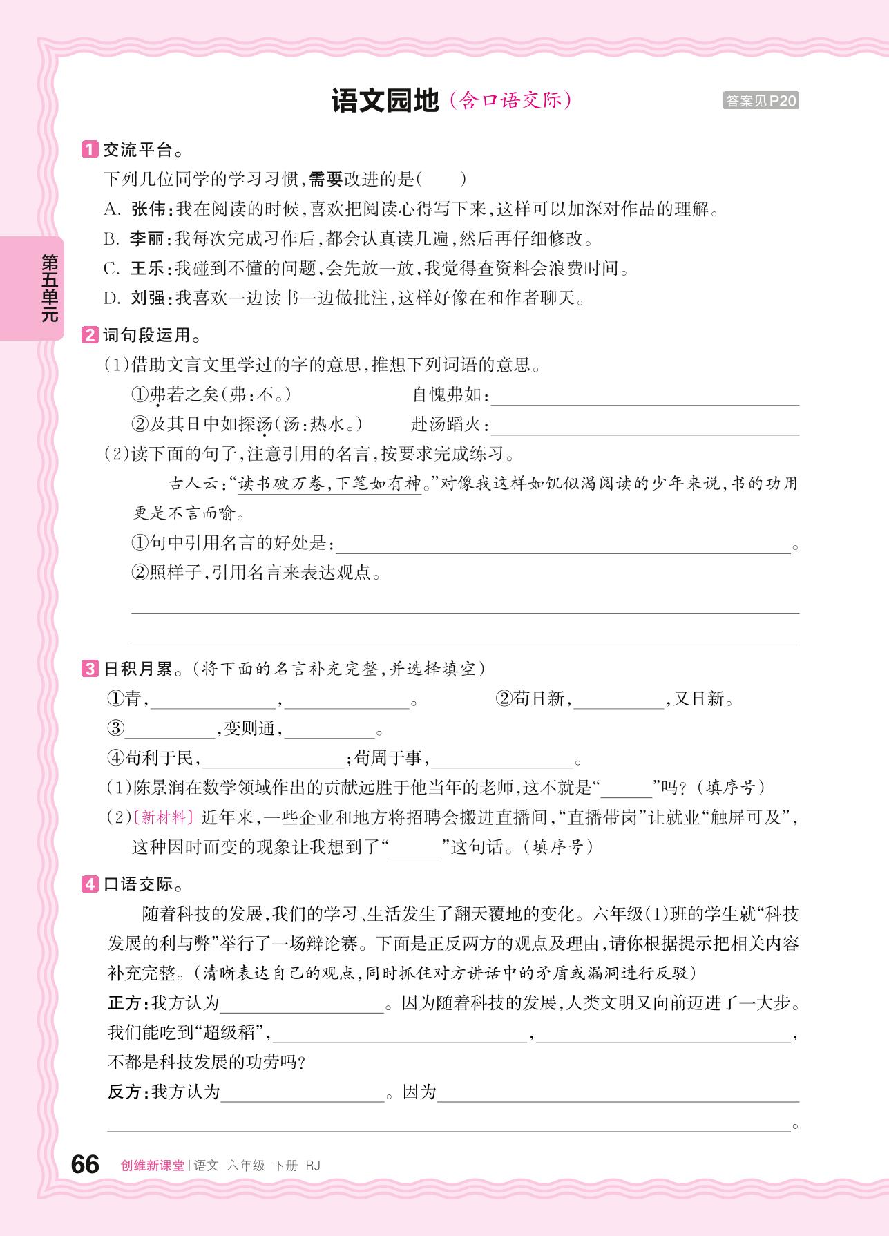 2024春下册六年级语文人教版 第五单元 科学精神——语文园地(含口语交际)