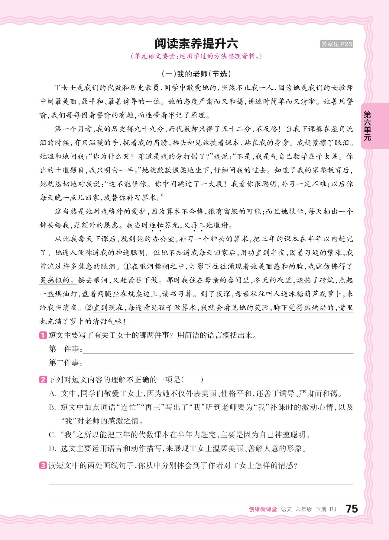 2024春下册六年级语文人教版 第六单元 难忘小学生活——阅读素养提升六