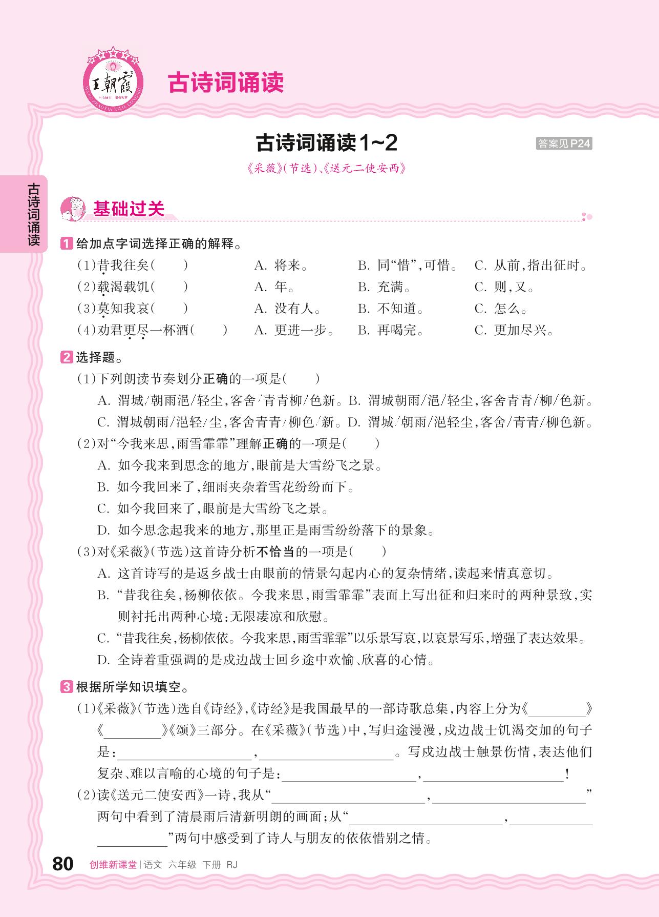 2024春下册六年级语文人教版 古诗词诵读——古诗词诵读1~2《采薇》(节选)《送元二使西安》