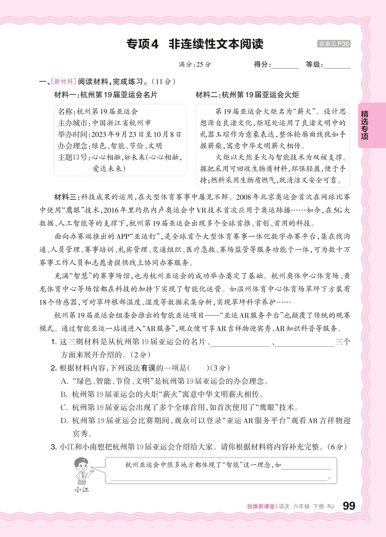 2024春下册六年级语文人教版 精选专项——专项4 非连续性文本阅读