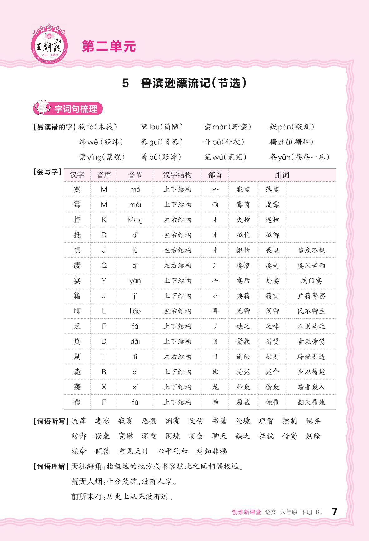 2024春下册六年级语文人教版 助学手册 第二单元——5. 鲁滨逊漂流记(节选)