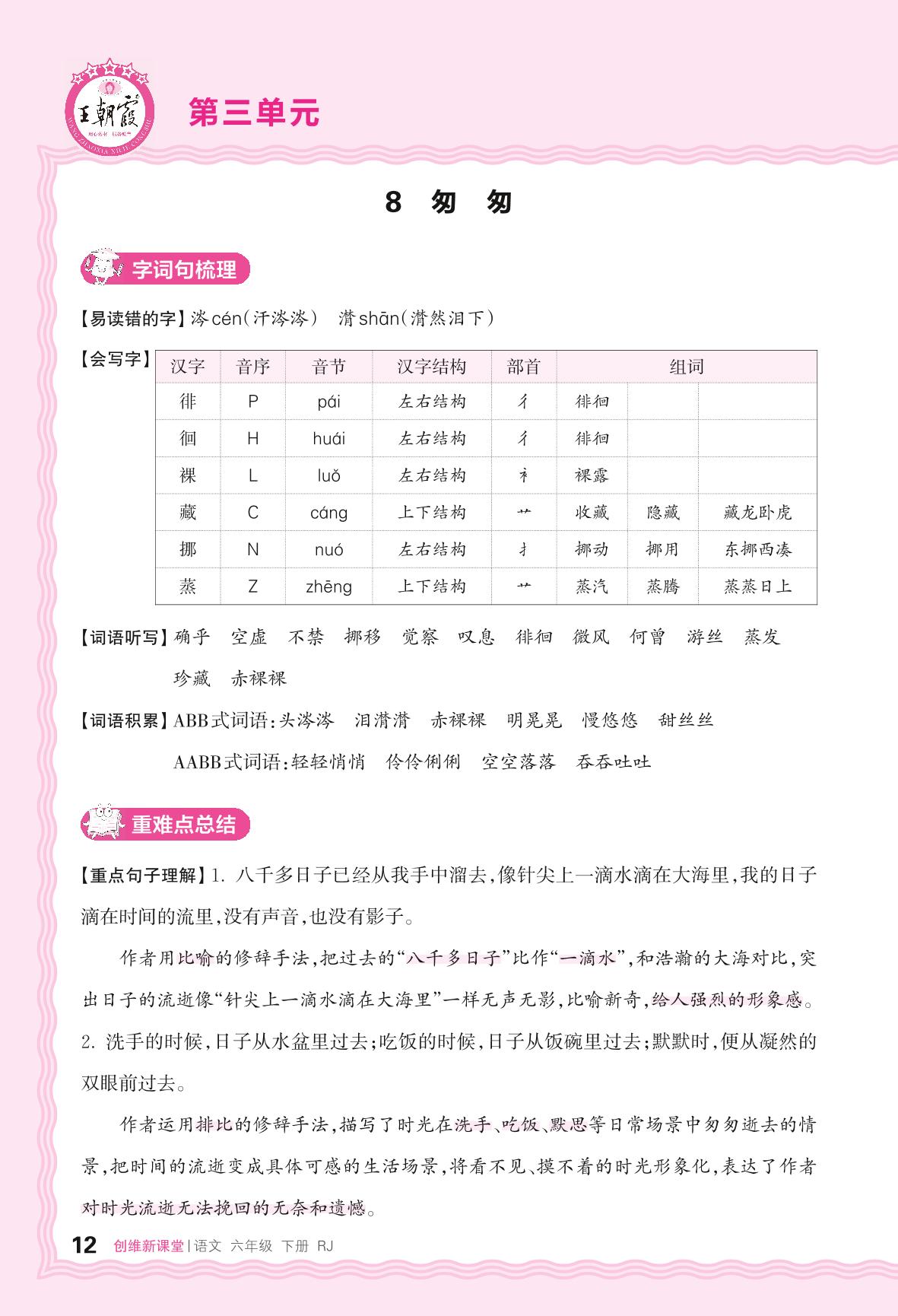 2024春下册六年级语文人教版 助学手册 第三单元——8. 匆匆