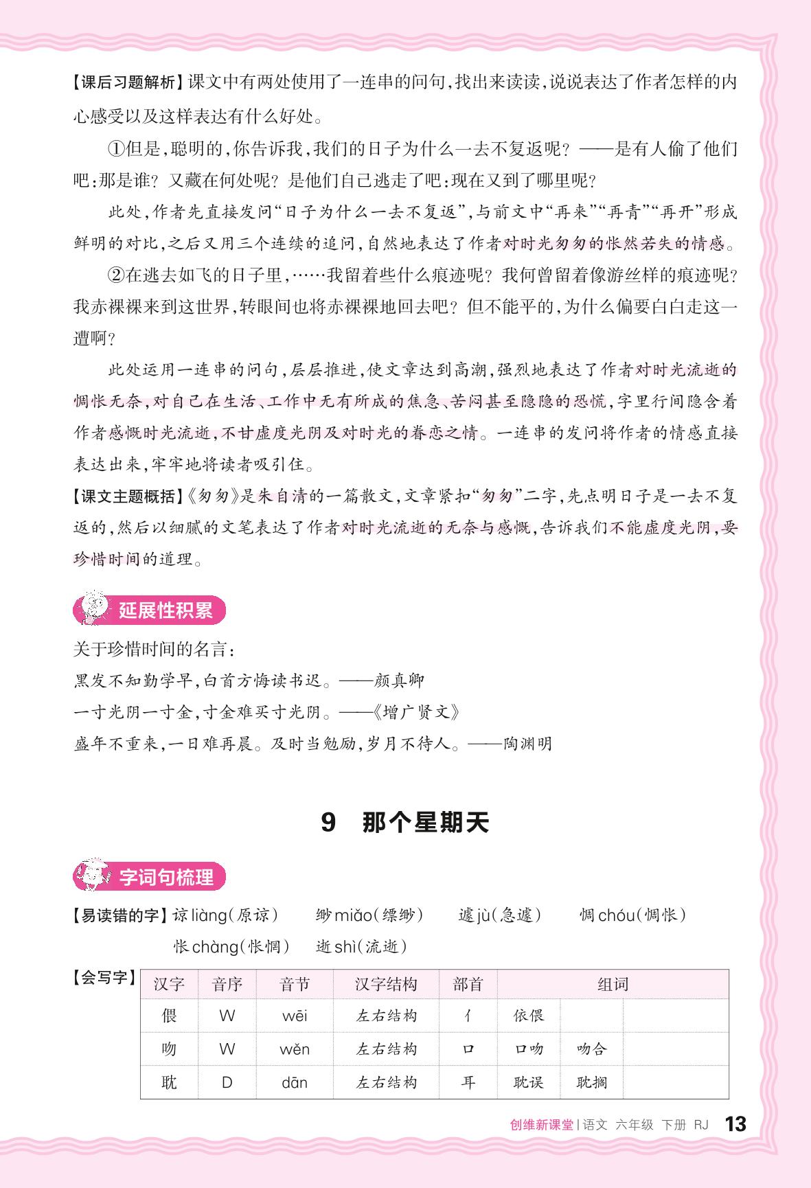 2024春下册六年级语文人教版 助学手册 第三单元——9. 那个星期天