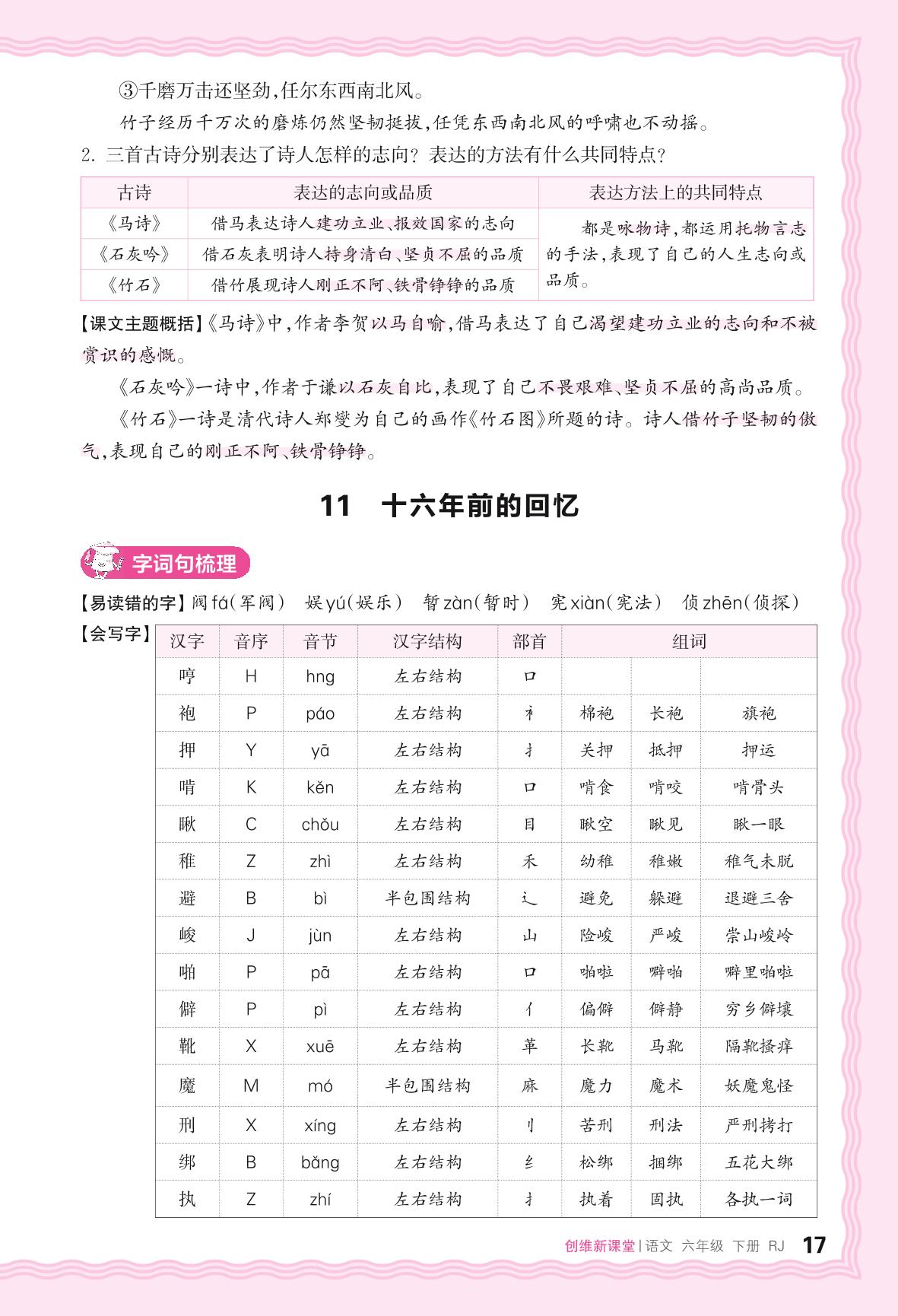 2024春下册六年级语文人教版 助学手册 第四单元——11. 十六年前的回忆